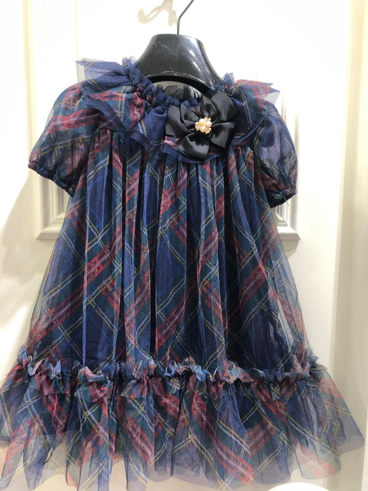 Abito in morbido tulle in blu scozzese con bottoncini sul retro Per saperne di più