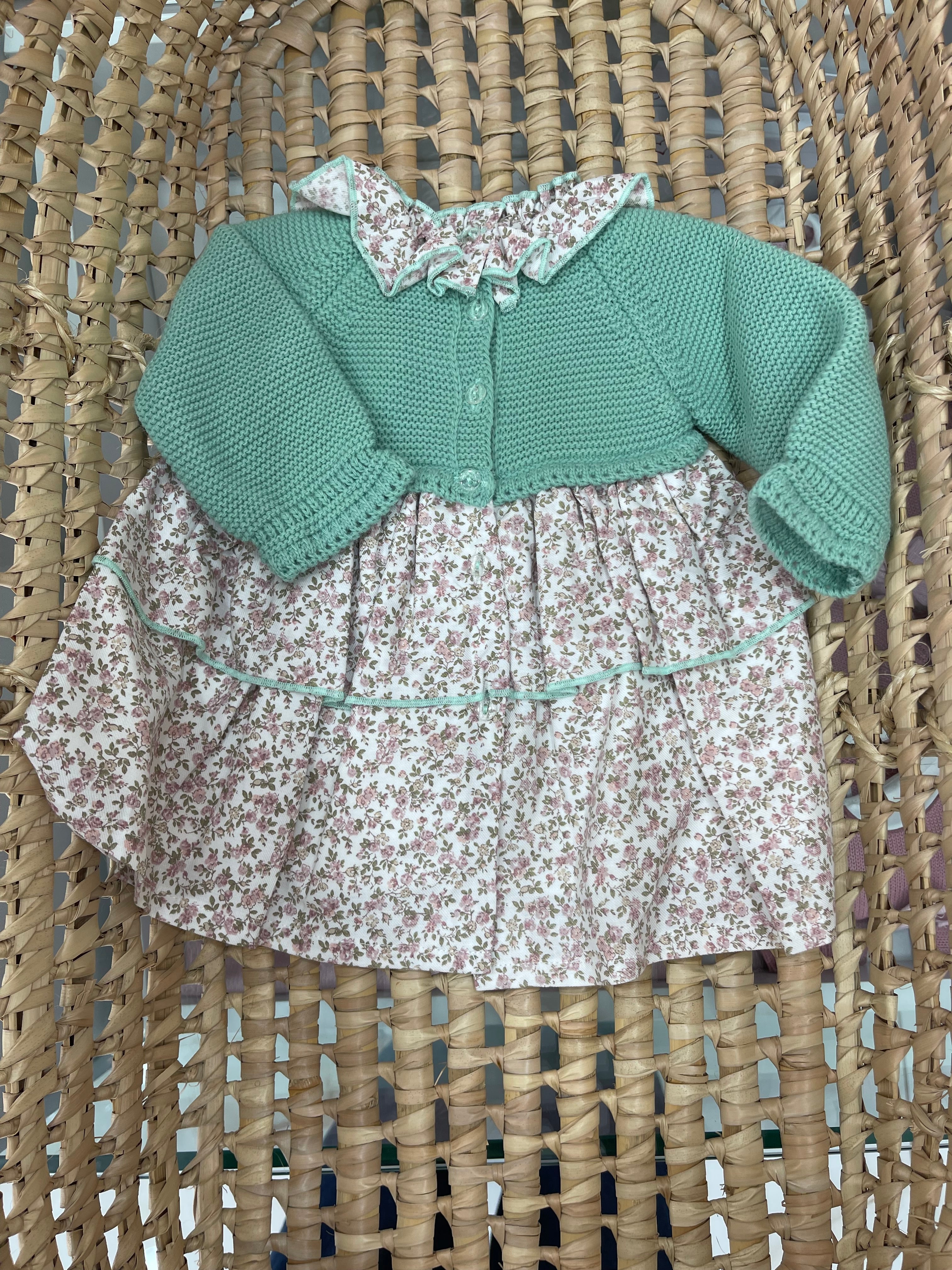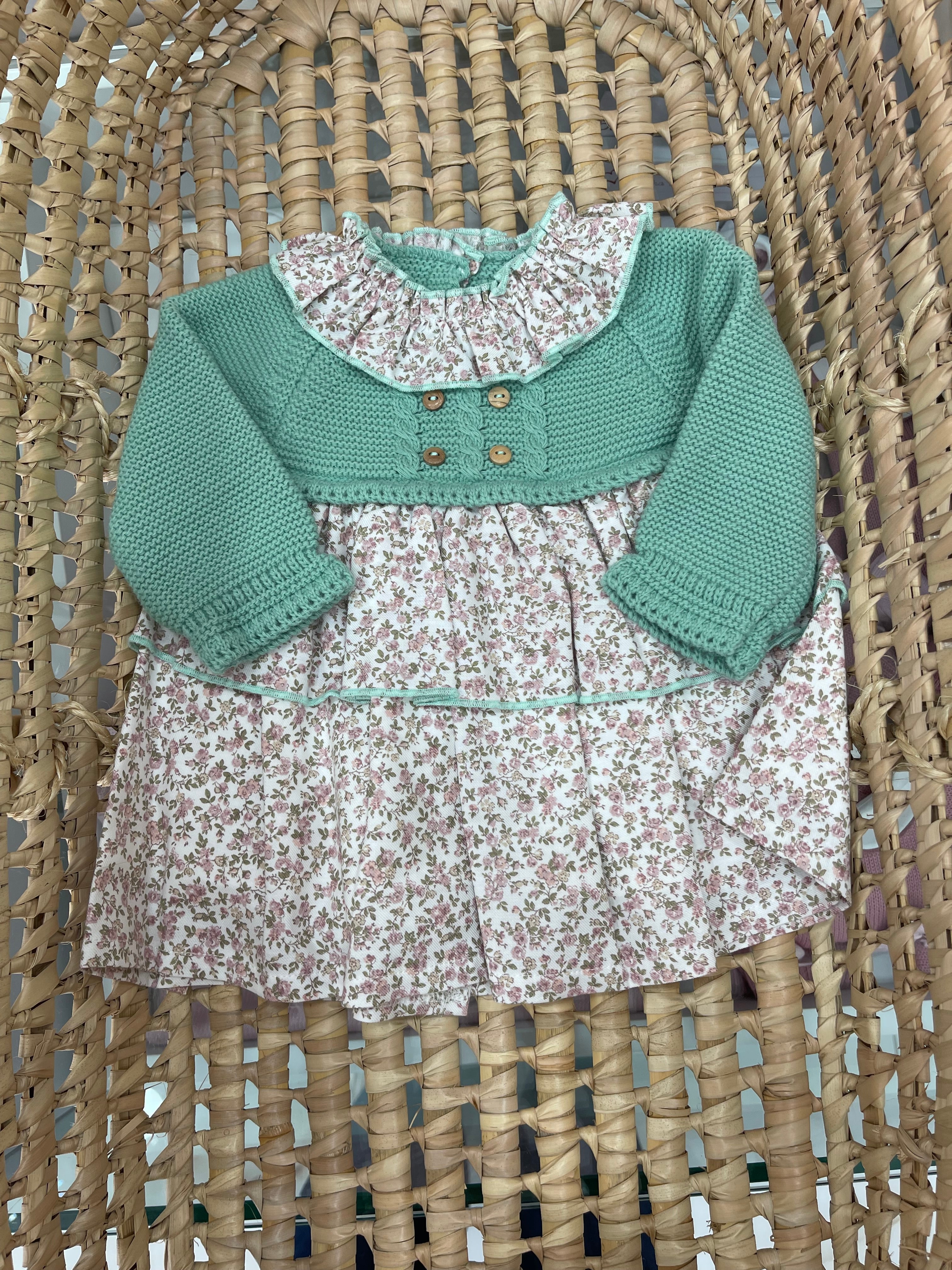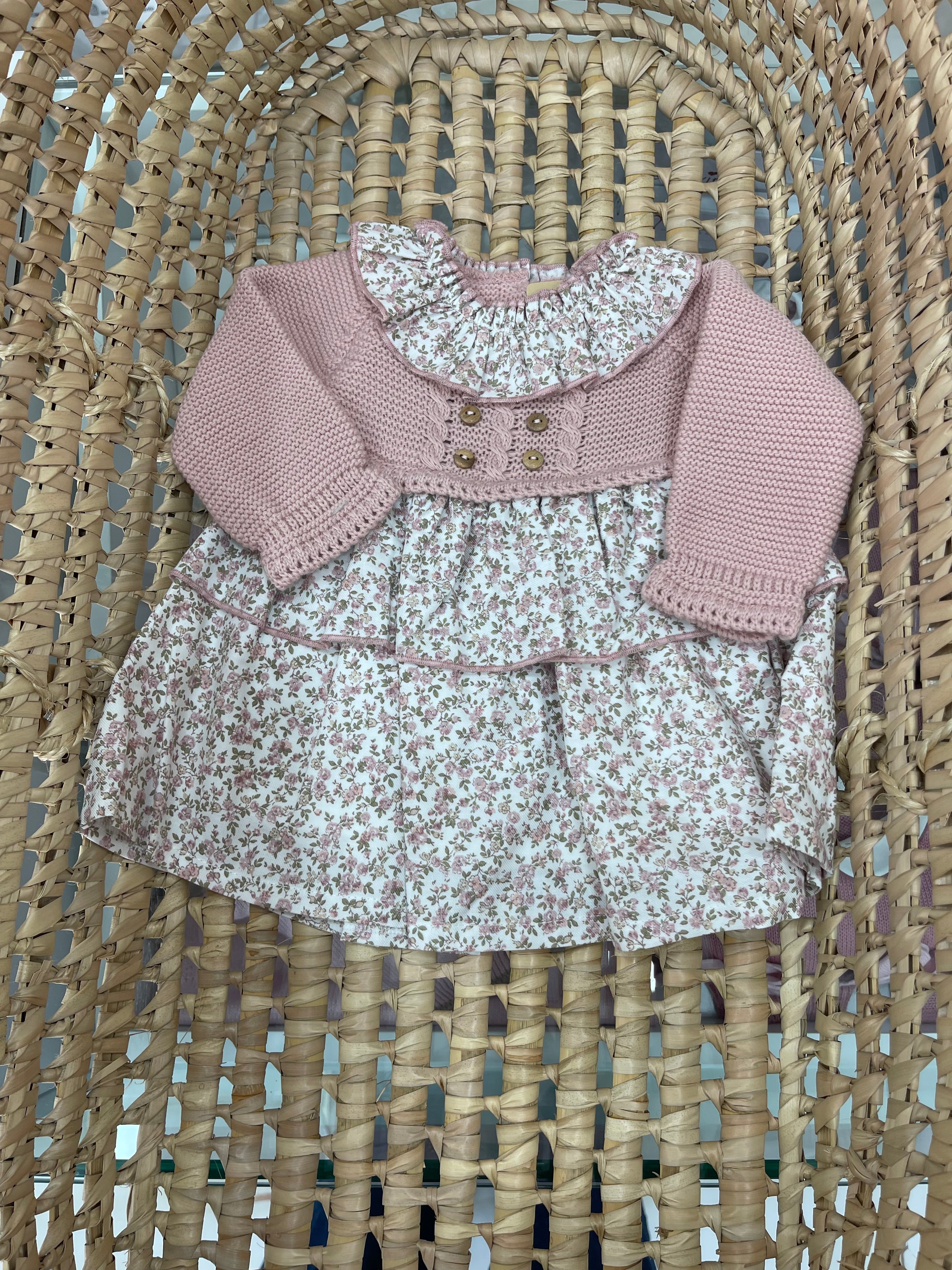 Abito bimba in maglia con fiorellini in tessuto provenzale con bottini dietro facile da indossare