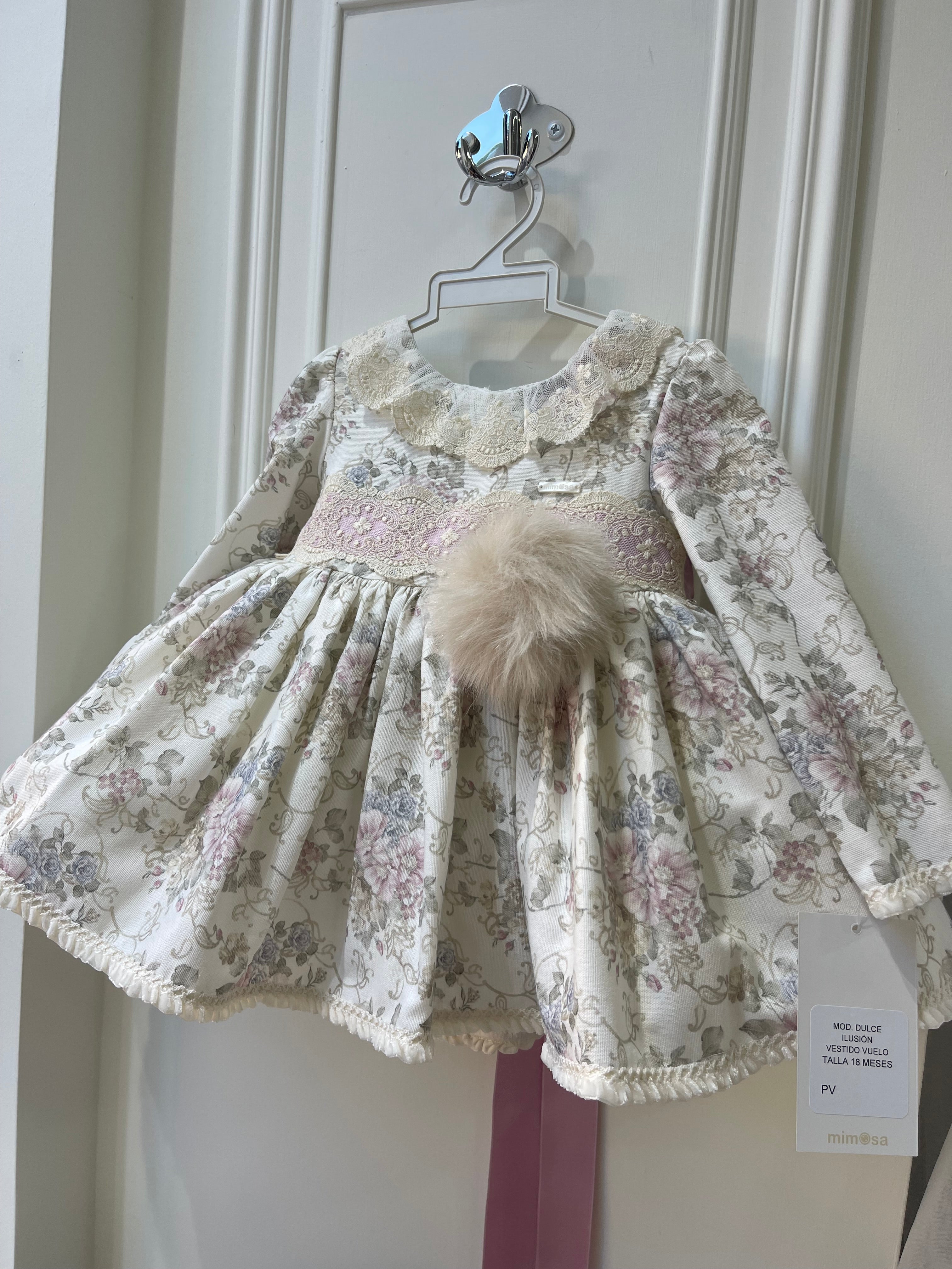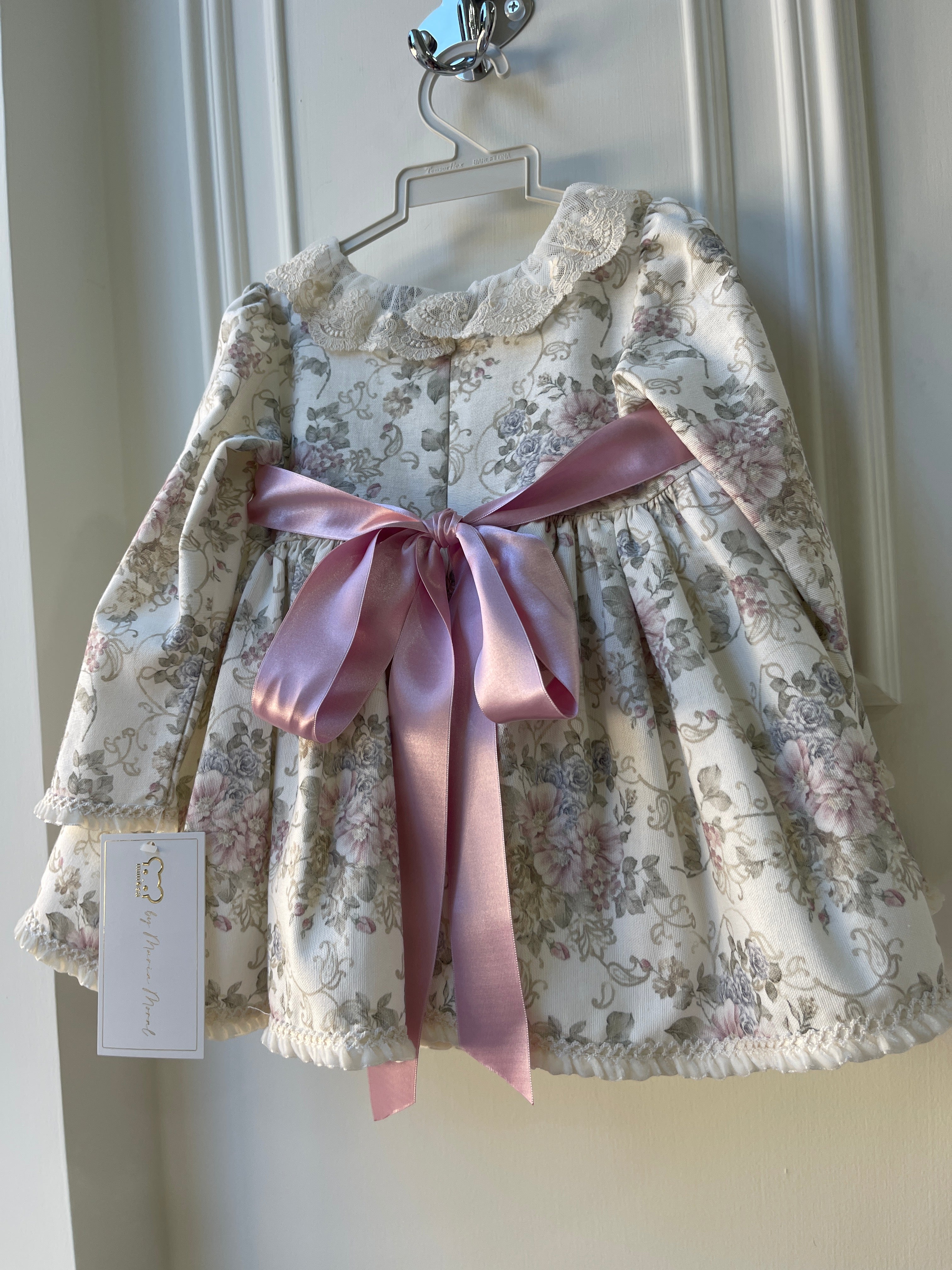 Abito bimba dai toni delicati , collo in pizzo , stampa floreale e pon pon removibile , culotte coordinata vestibilità... Per saperne di più