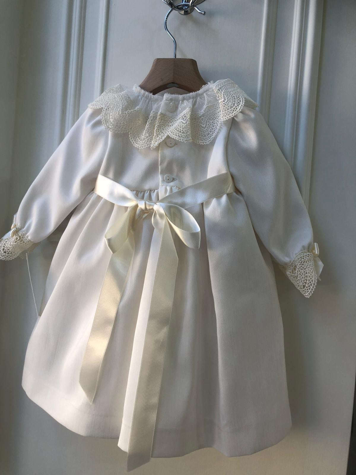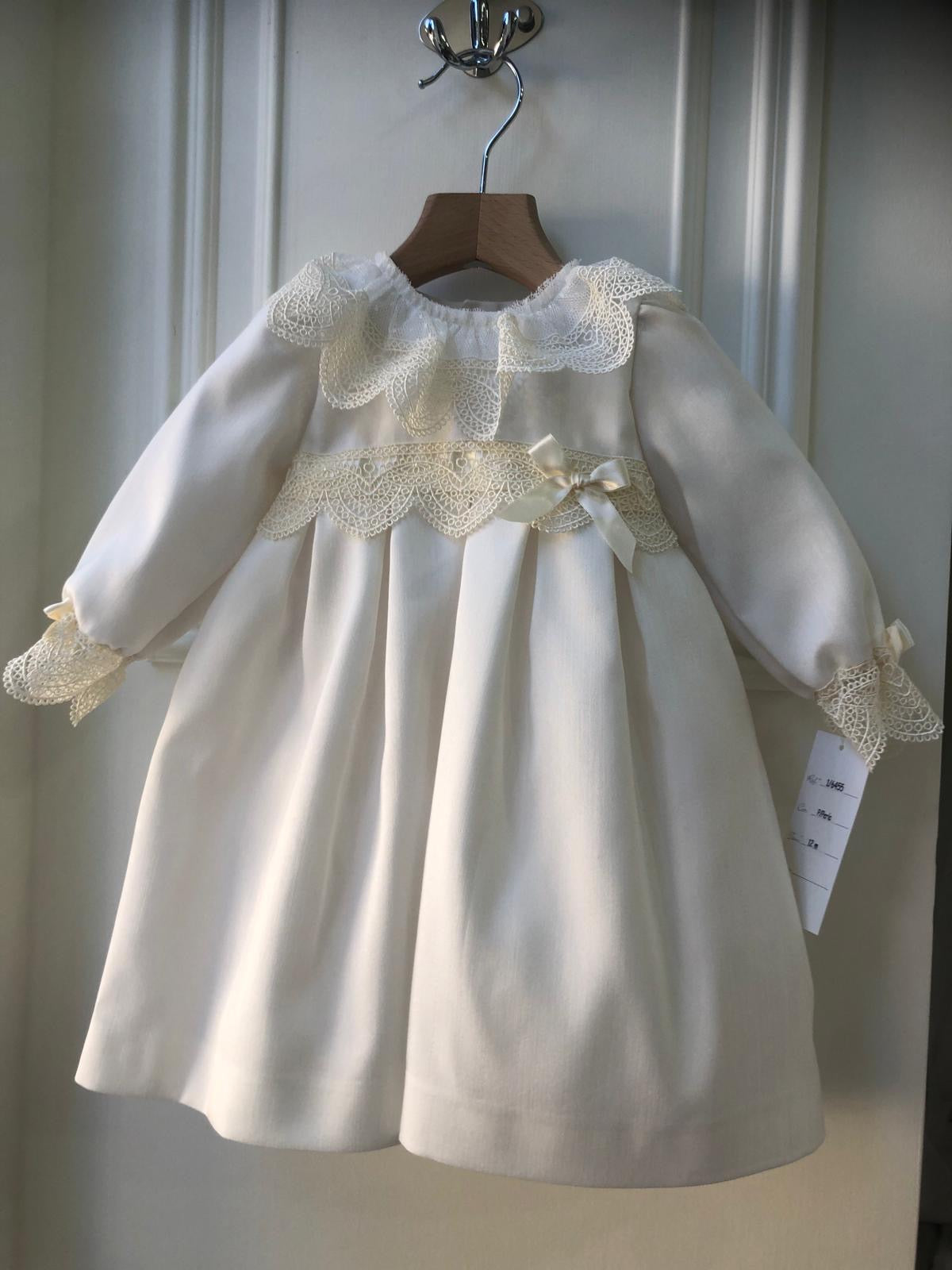 Abito elegante a manica lunga , collo rotondo lavorato con pizzo , pizzo lavorato sul petto , bottoncini sul retro... Per saperne di più