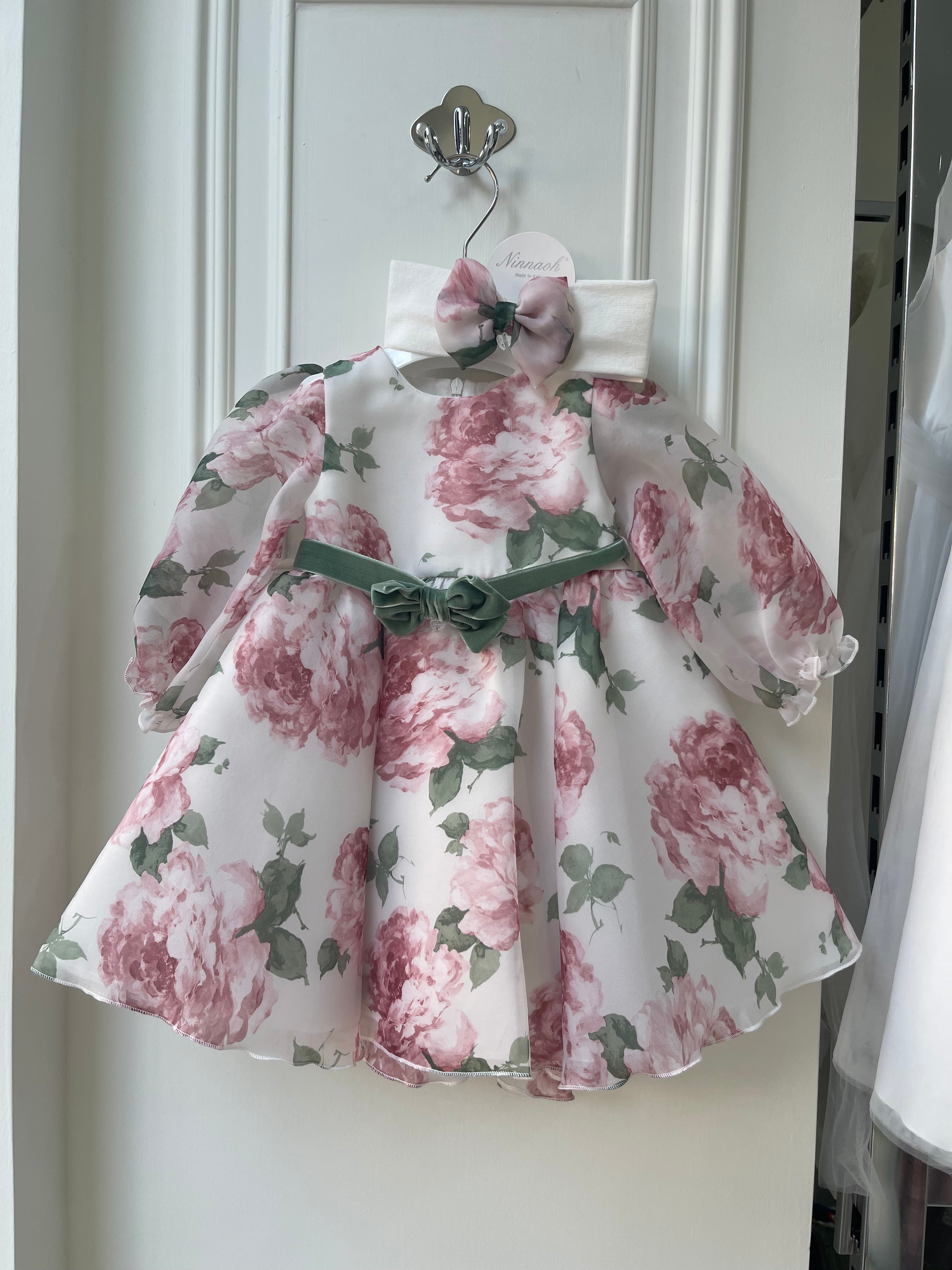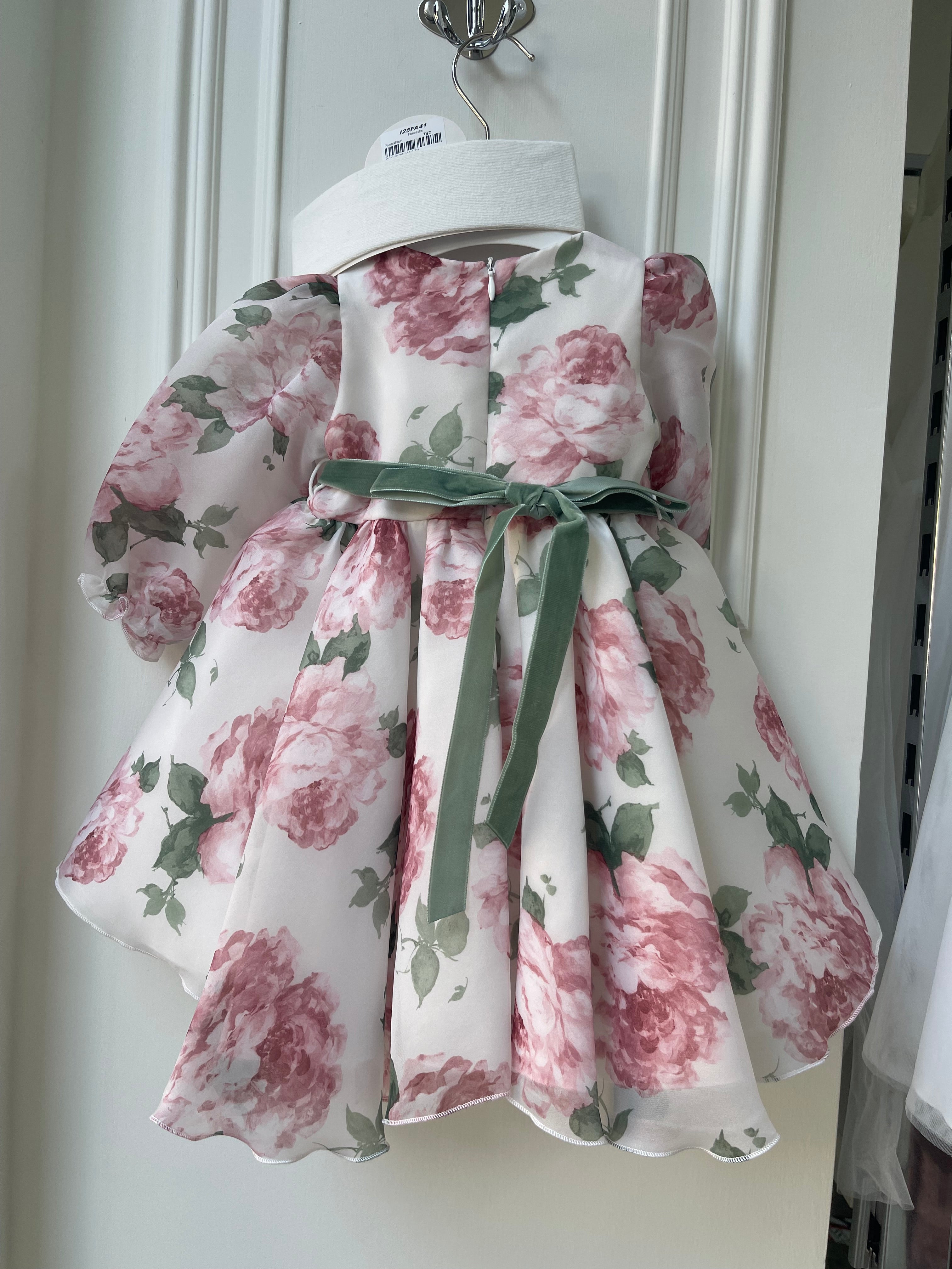 Abito elegante bambina , con tulle e vello , in vita ha un fiocco di velluto , verde , maniche... Per saperne di più