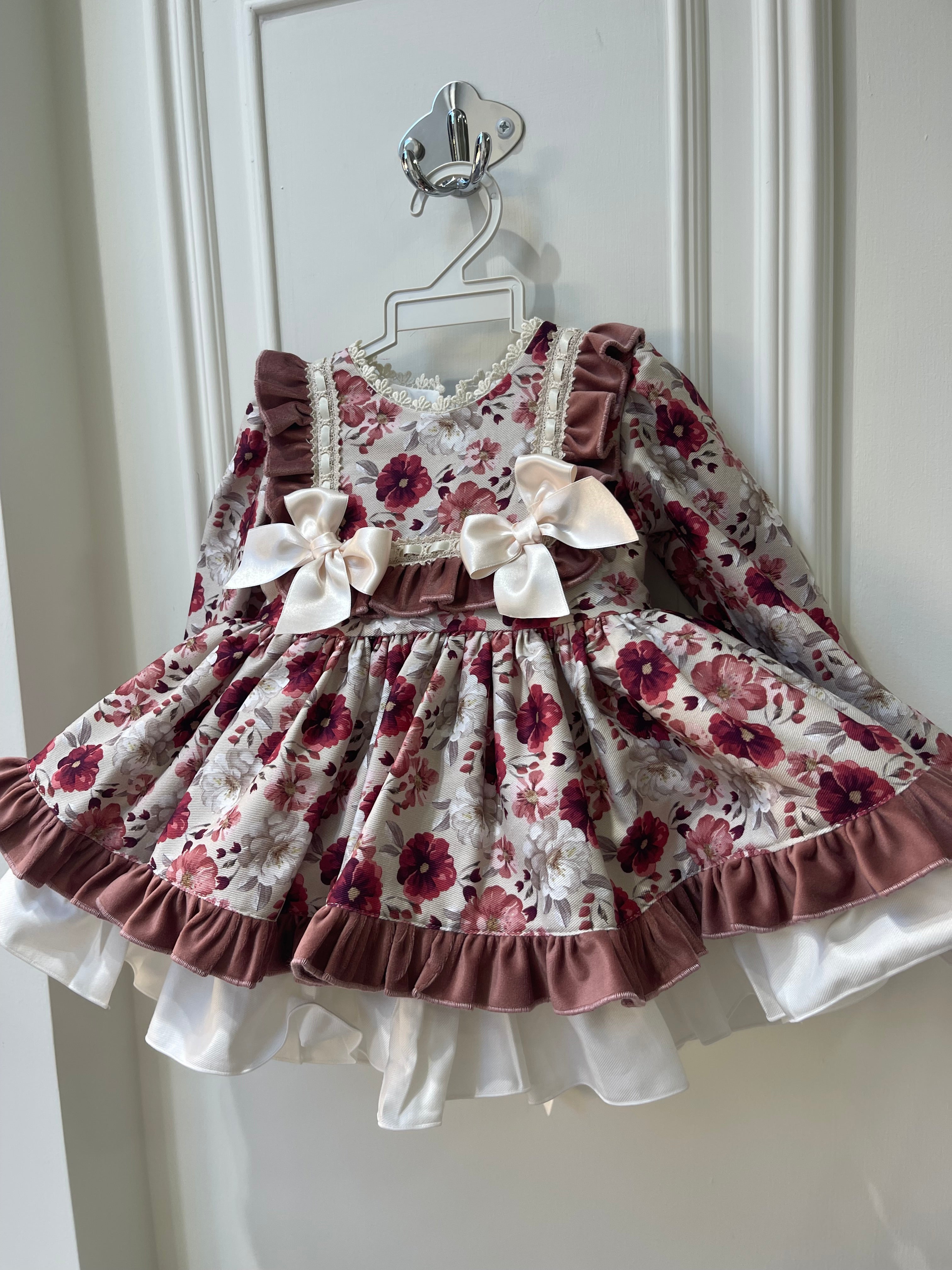 Abito bimba con in caldo cotone con balze in velluto e fiocchi in raso , sotto coordinata di culotte ,... Per saperne di più
