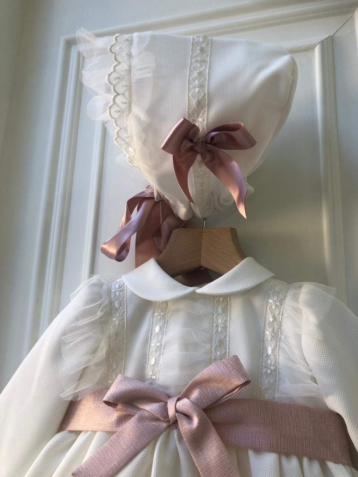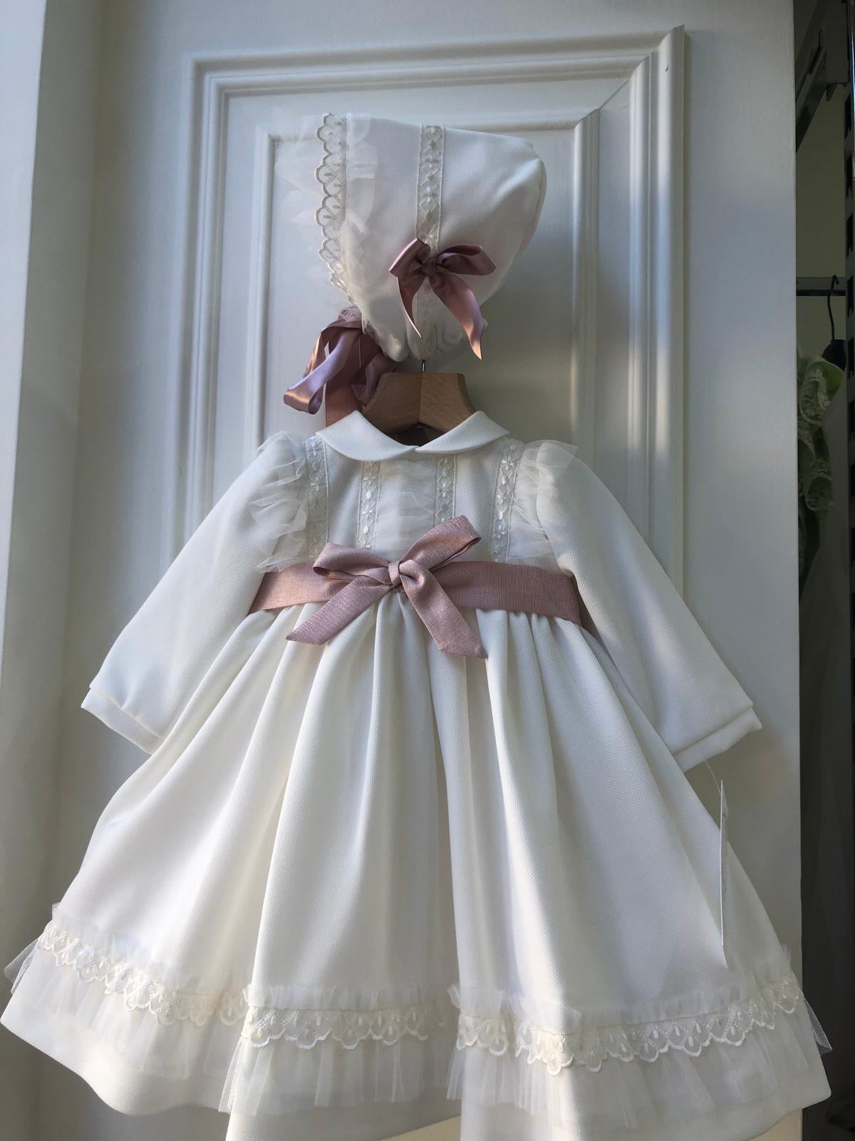 Abito elegante a maniche lunghe , con veli di pizzo sul petto e sul gonnellone , sotto il petto c’è... Per saperne di più