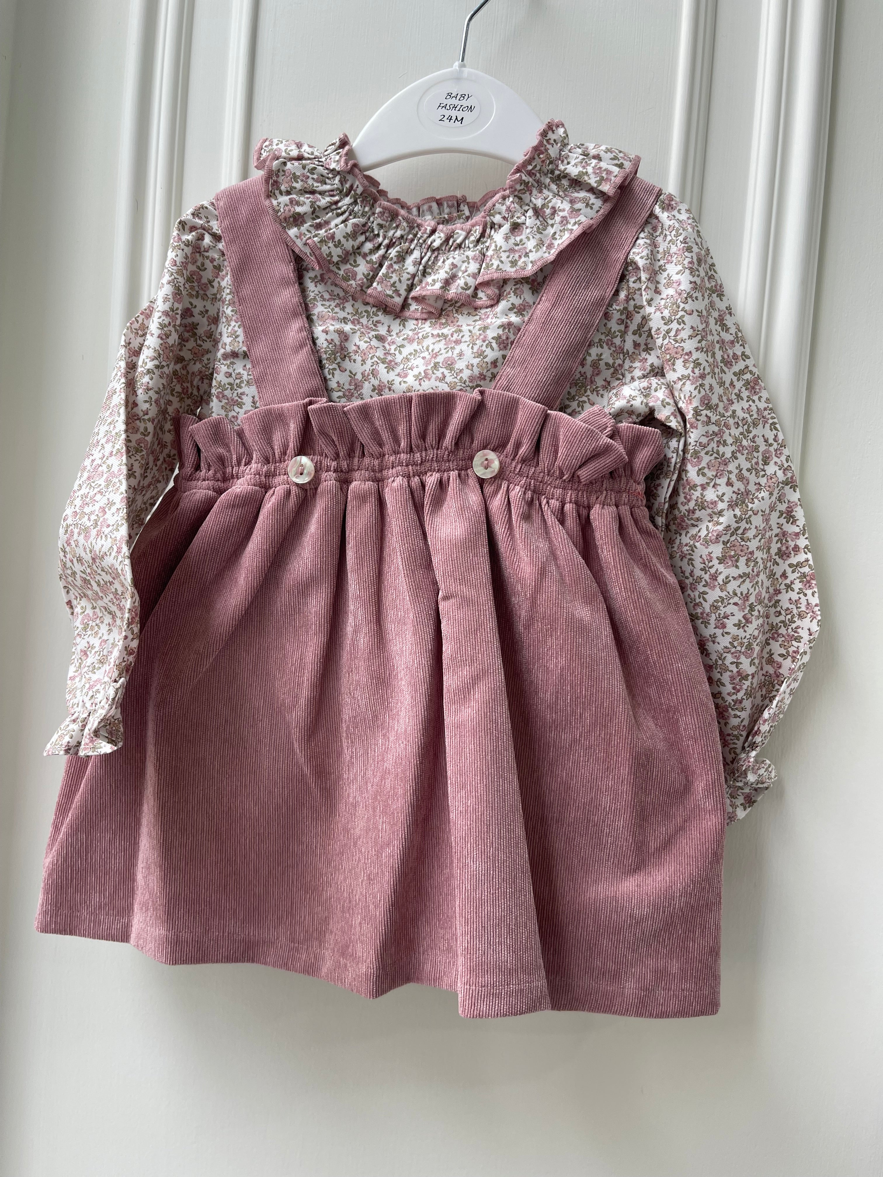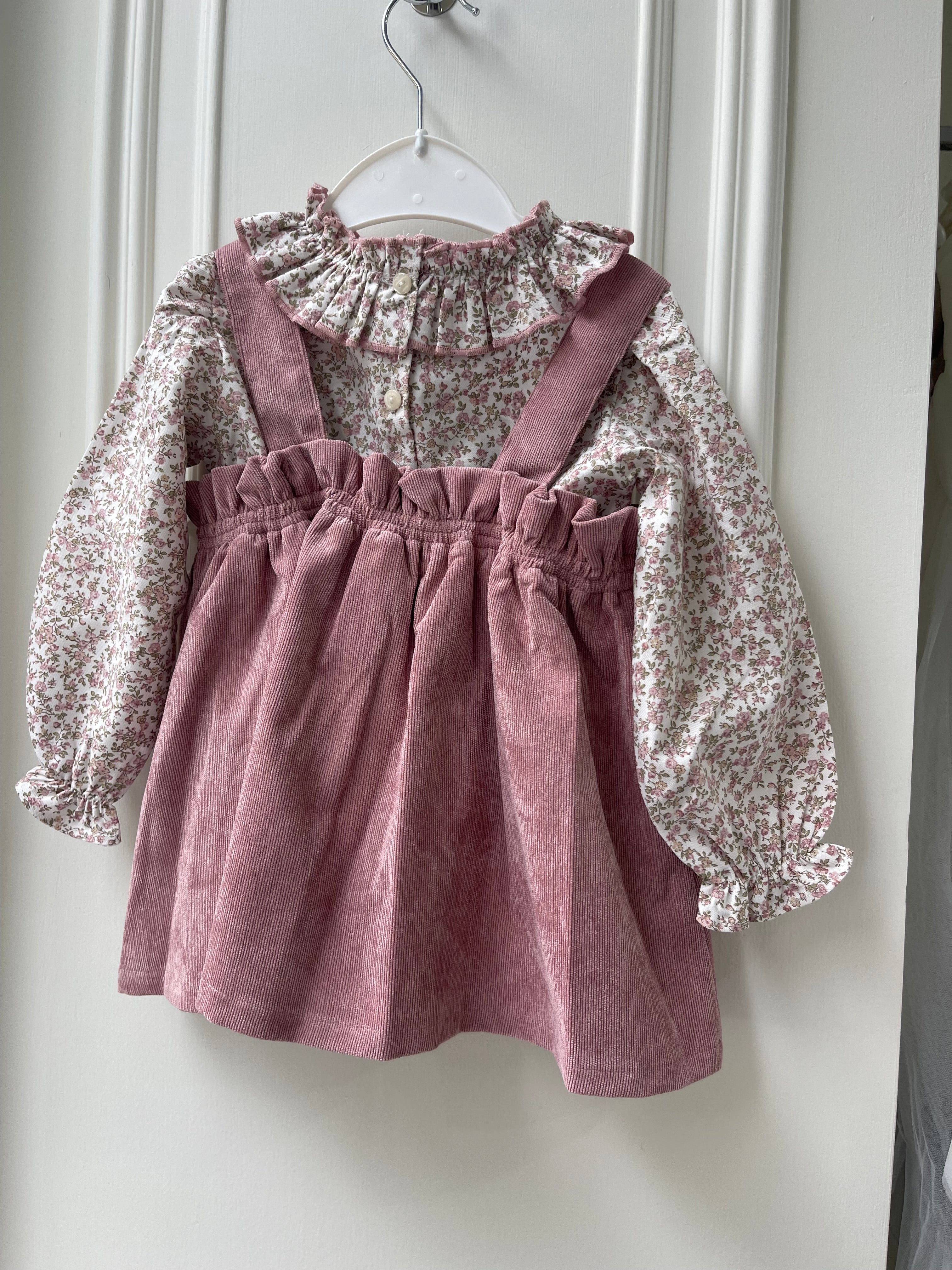 Abito con salopette in velluto , camicia in caldo cotone floreale , con bottoni sul retro vestibilità normale Per saperne di più