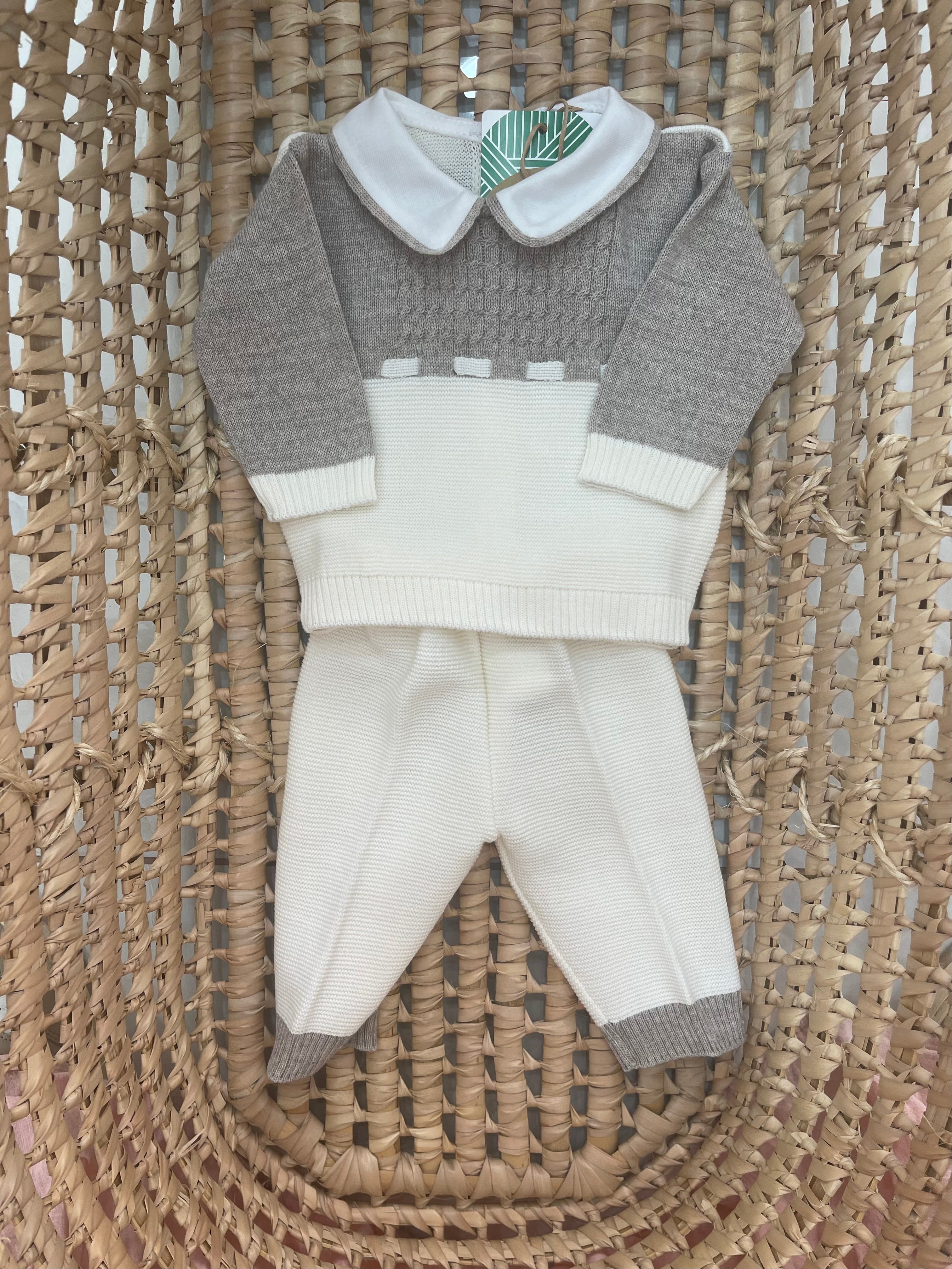 Coordinato due pezzi senza piedino doppio colore latte e beige maglia con collo e bottoncini Per saperne di più