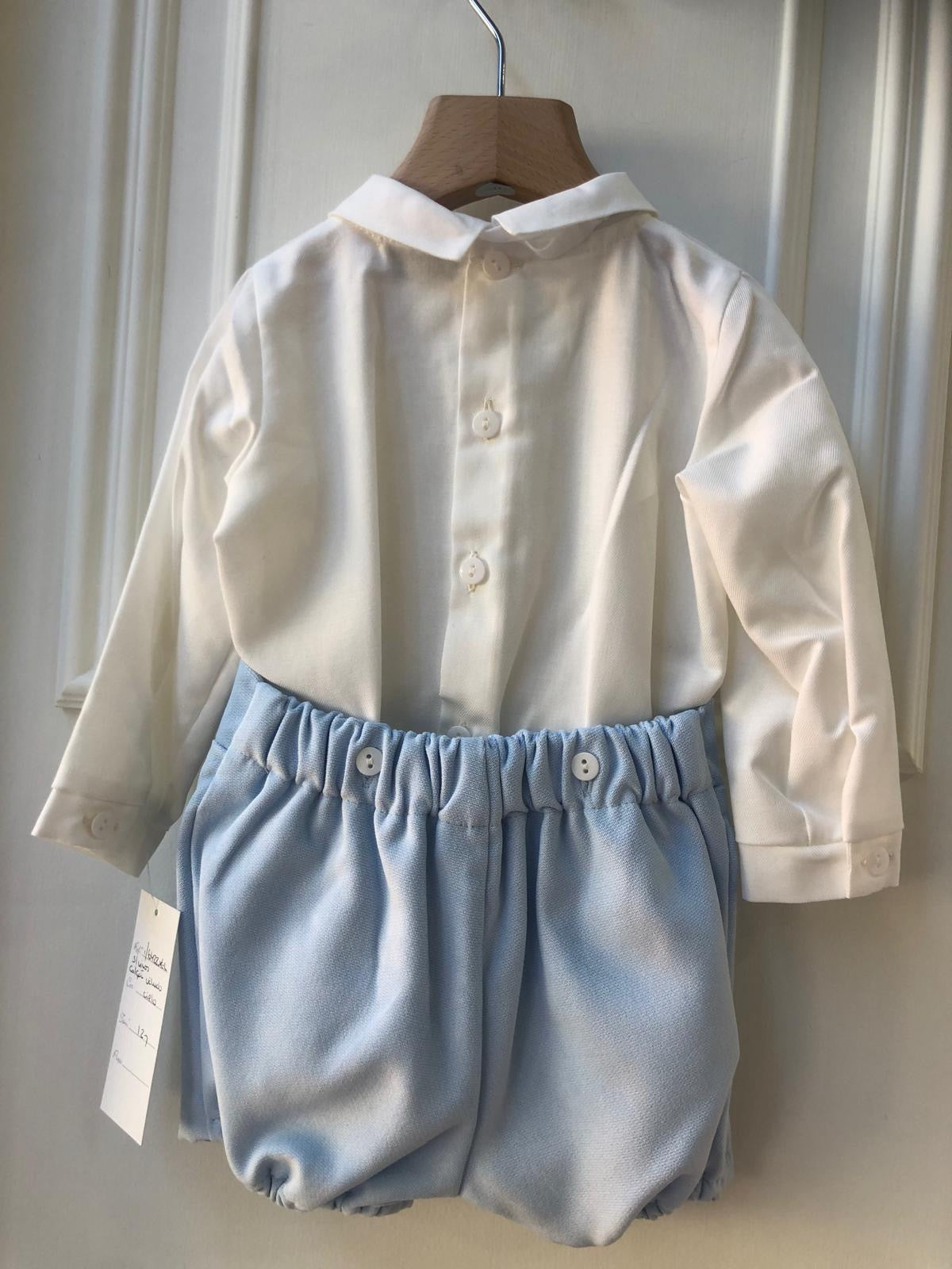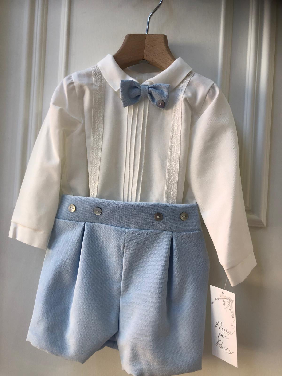 Completo Battesimale in velluto , camicia Lavorata con papillon removibile e pantaloncini in velluto cielo , camicia con bottoncini sul... Per saperne di più