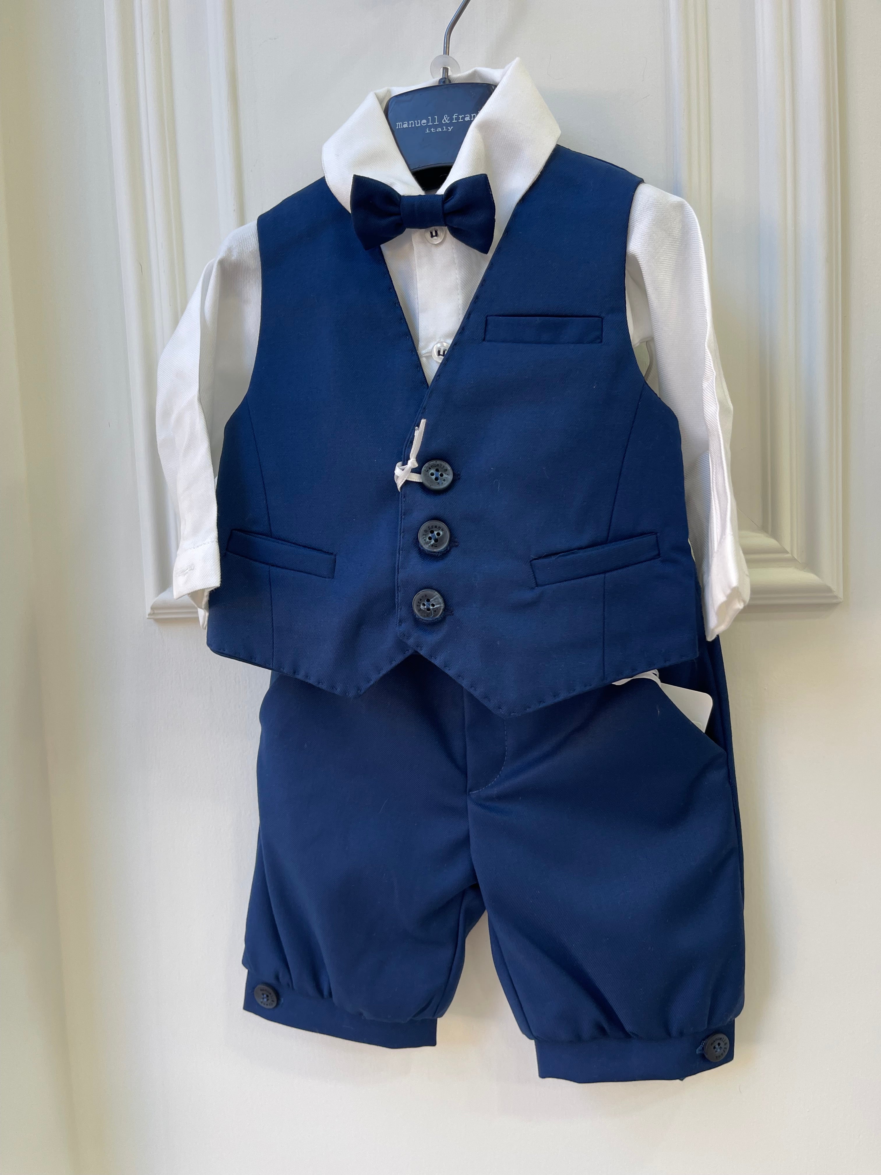 Completo cerimonia bimbo composto da panciotto con bottoni in blu , pantalone all inglese con bottoncino camicia a body con... Per saperne di più