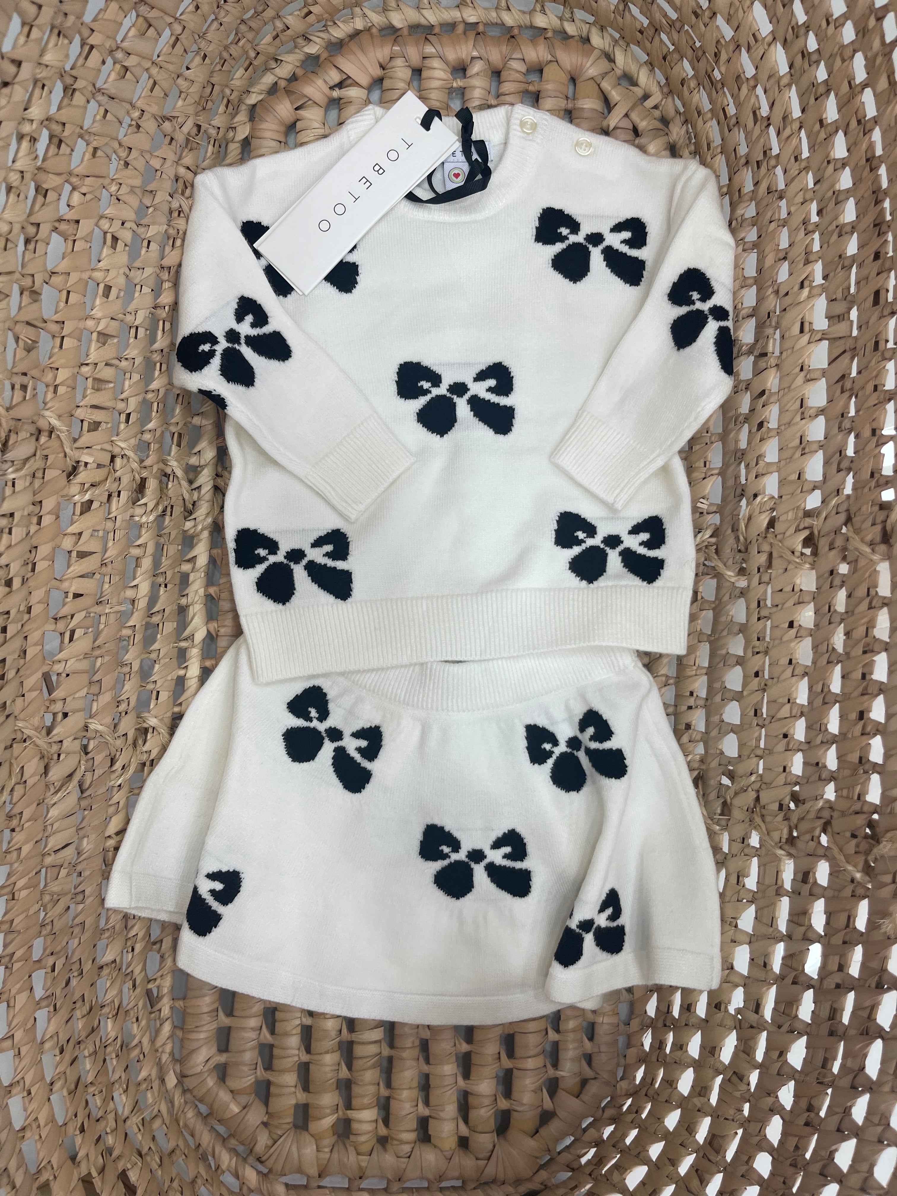 Meraviglioso coordinato in maglia , gonna con elastico leggermente a campana .. coordinato con fiocchi in contrasto nero tessuto su... Per saperne di più