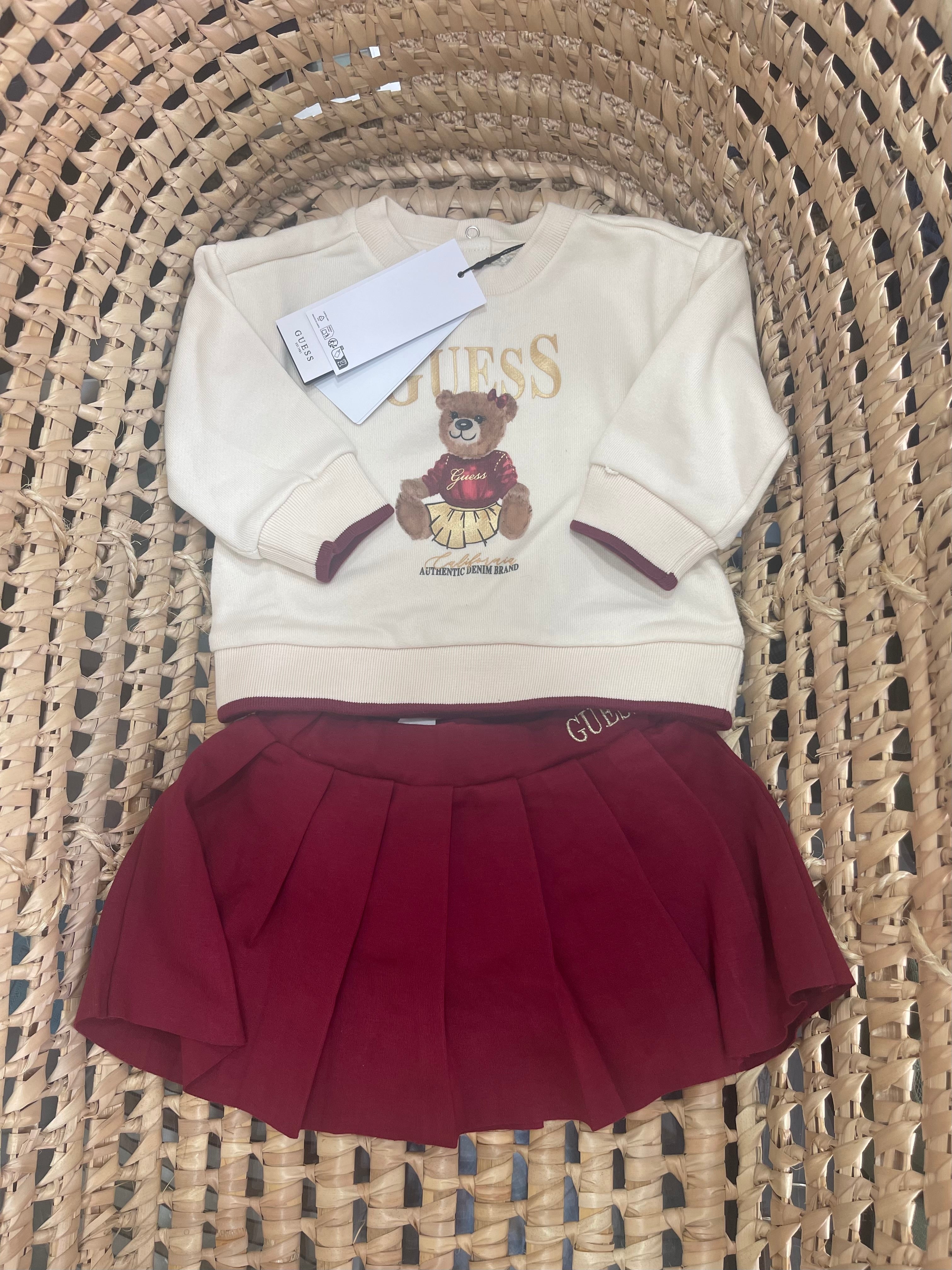 Felpa con orso stampato , con gonna plisse coordinata con riporti in oro , gonna con elastico in vita Per saperne di più