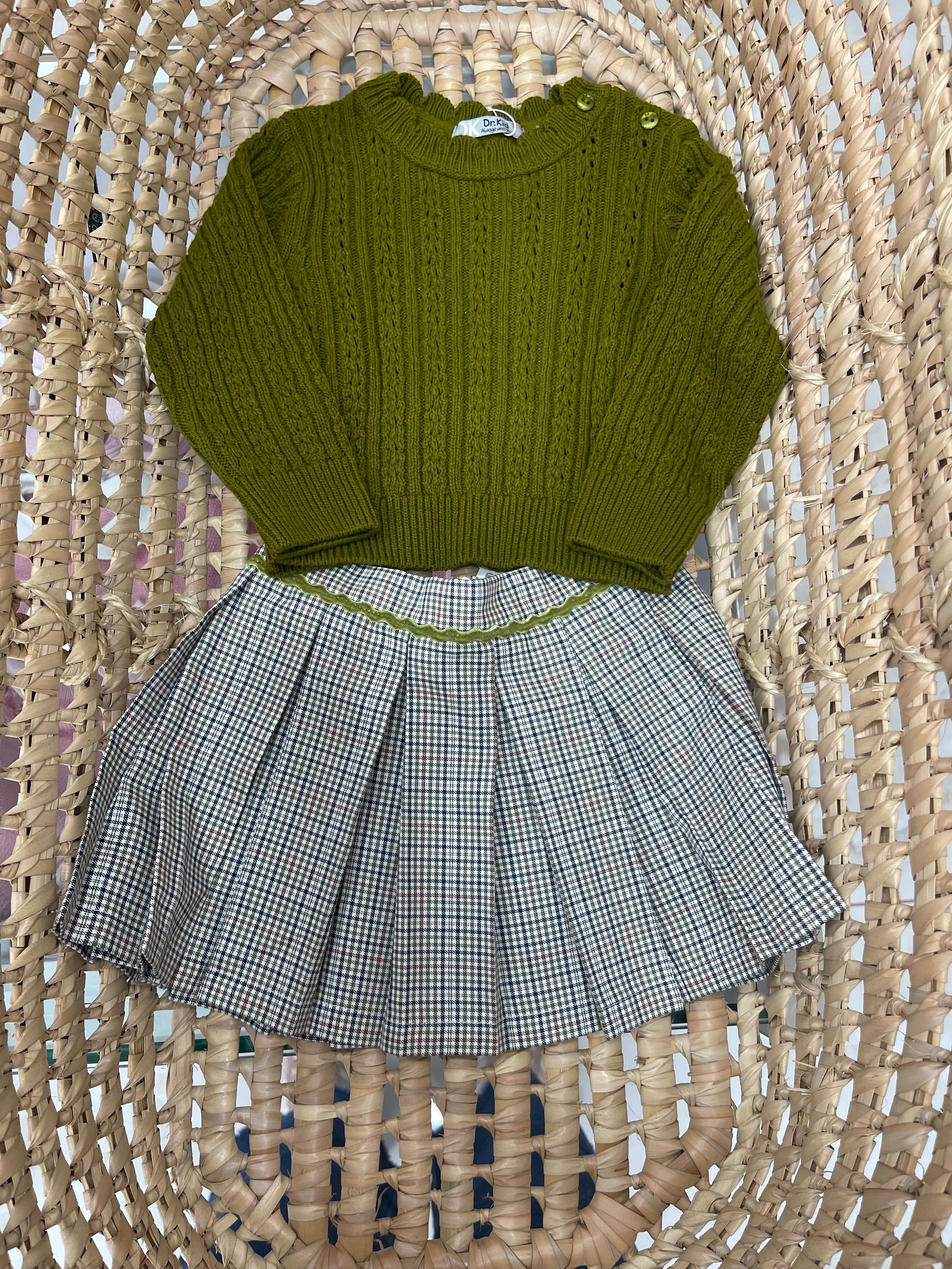Gonna e maglioncino completo , maglioncino in lana con trecce e gonnelina coordinata a quadri con inserti in velluto Per saperne di più