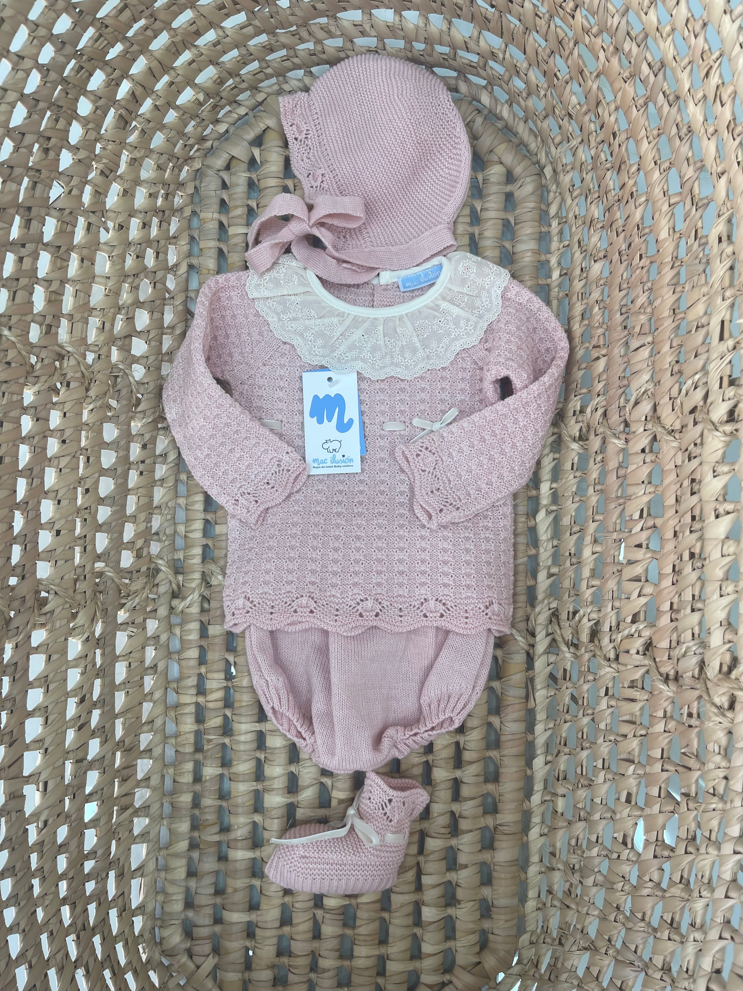 Completo due pezzi con culotte scarpine e cappello in un rosa antico , culotte con elastico comoda , maglietta con... Per saperne di più