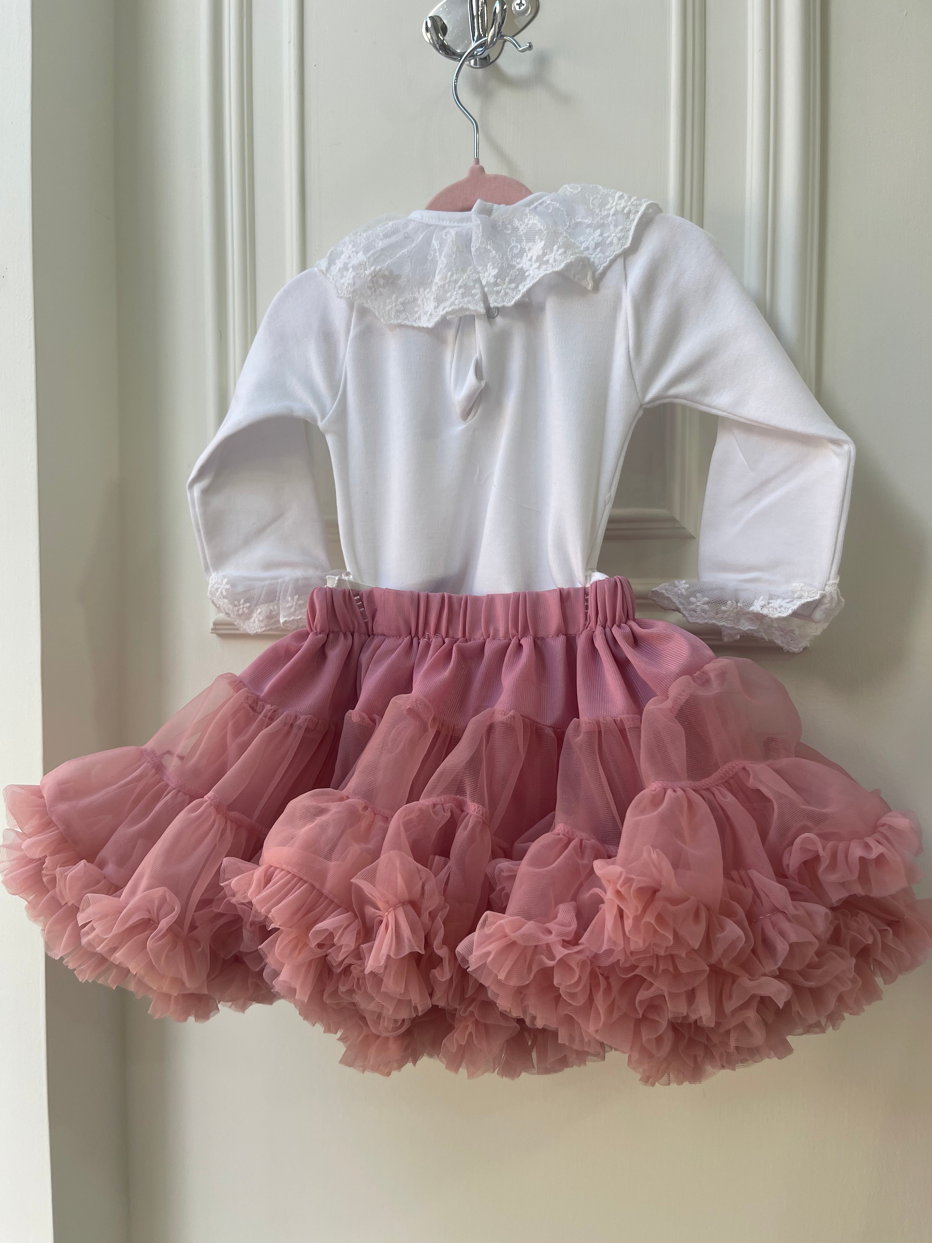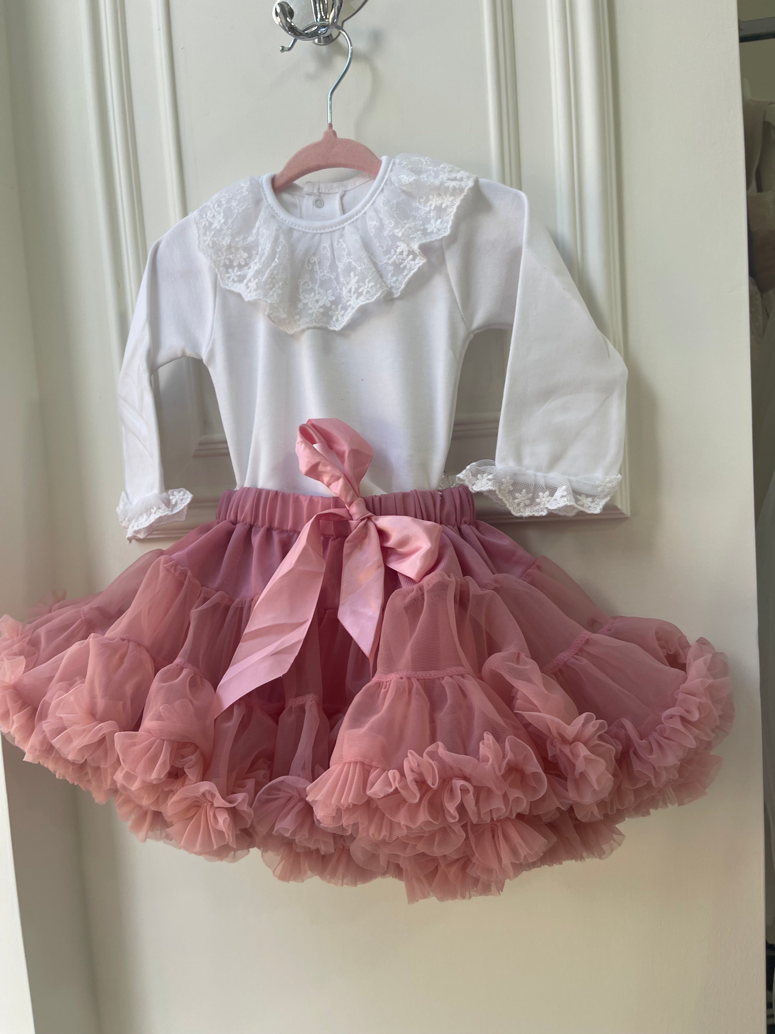 Completo composto da gonna in tulle con elastico in vita , regolatore interno con culisse in vita , coordinata con... Per saperne di più