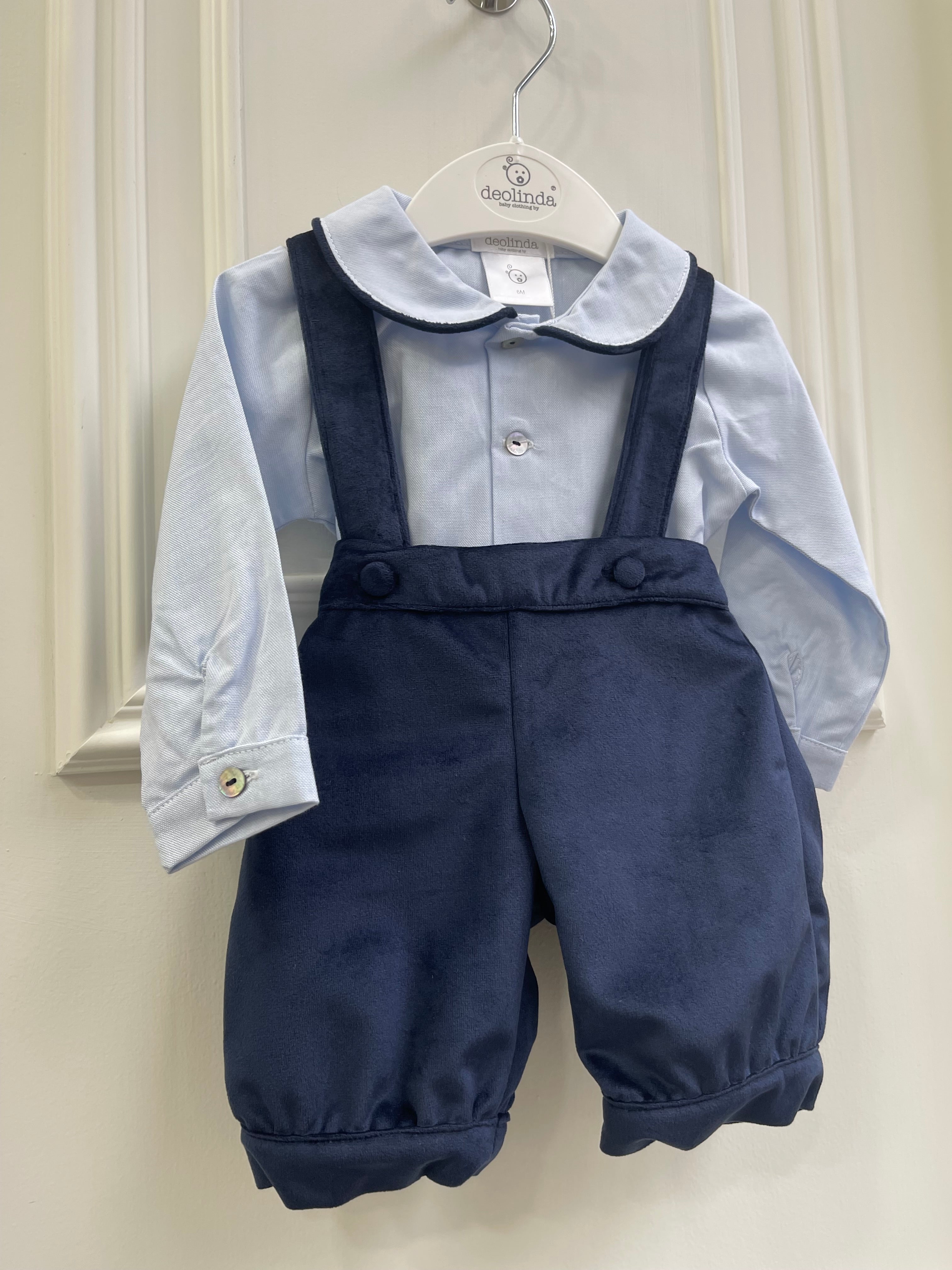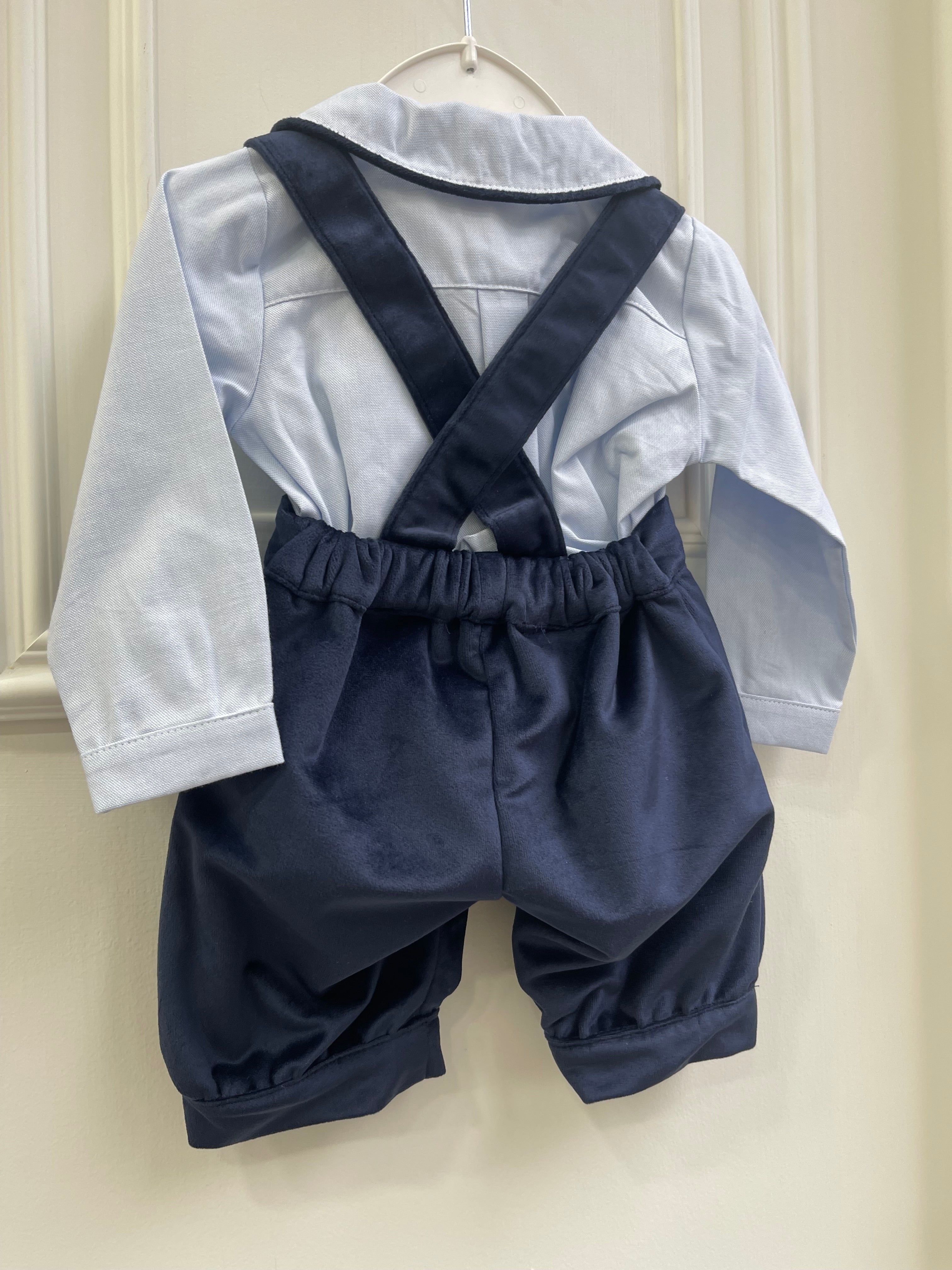 Completo in velluto con bratelle pantalone all inglese in velluto bratelle e camicia in caldo cotone celeste con collo rotondo Per saperne di più