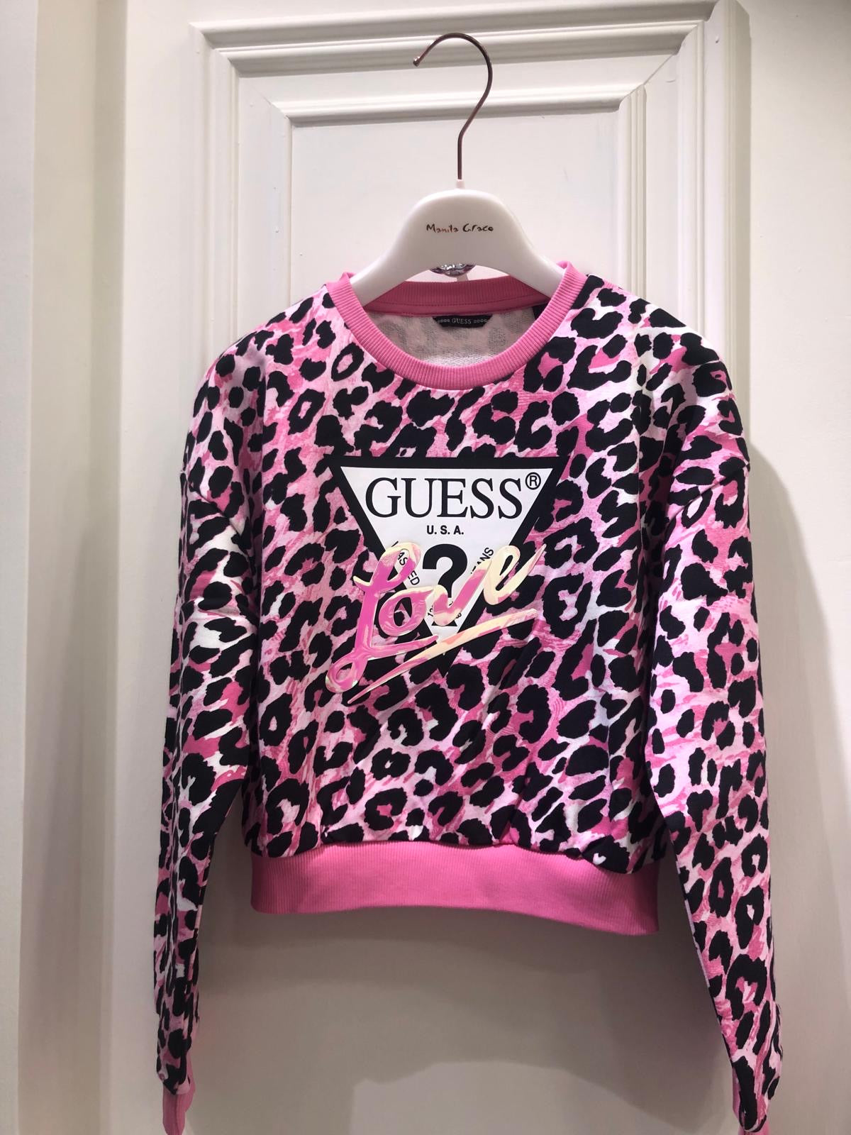 Felpa Leopardata ragazza , con contrasti con fucsia , modello crop leggermente corta , con polsini ed elastico in vita Per saperne di più
