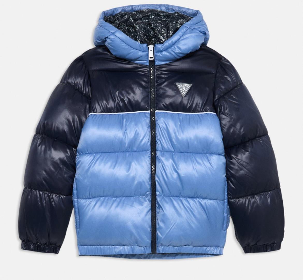 Piumino doppio colore azzuro e blu con cappuccio con polsini ed elastico in vita , con tasche vestibilità normale Per saperne di più