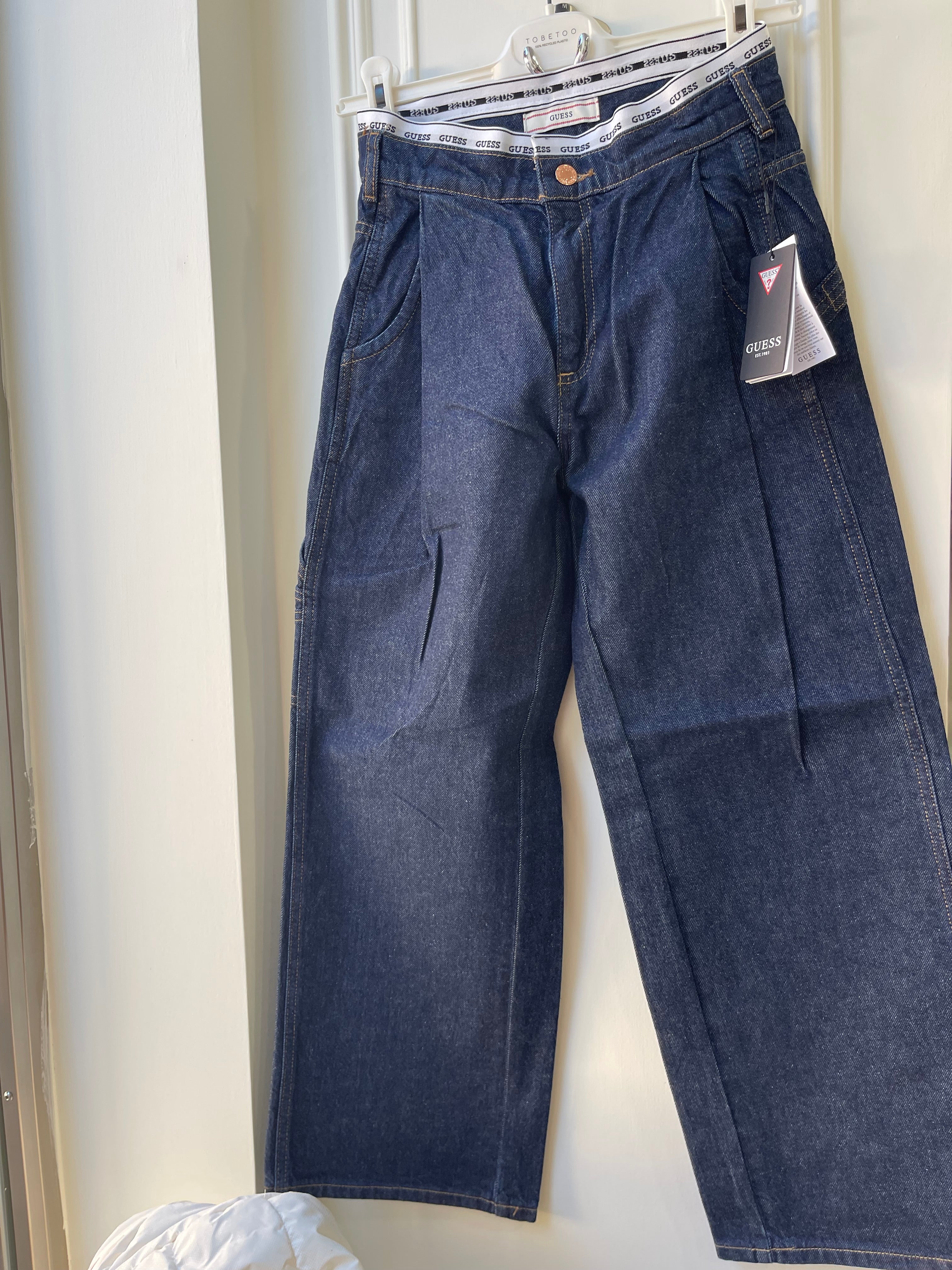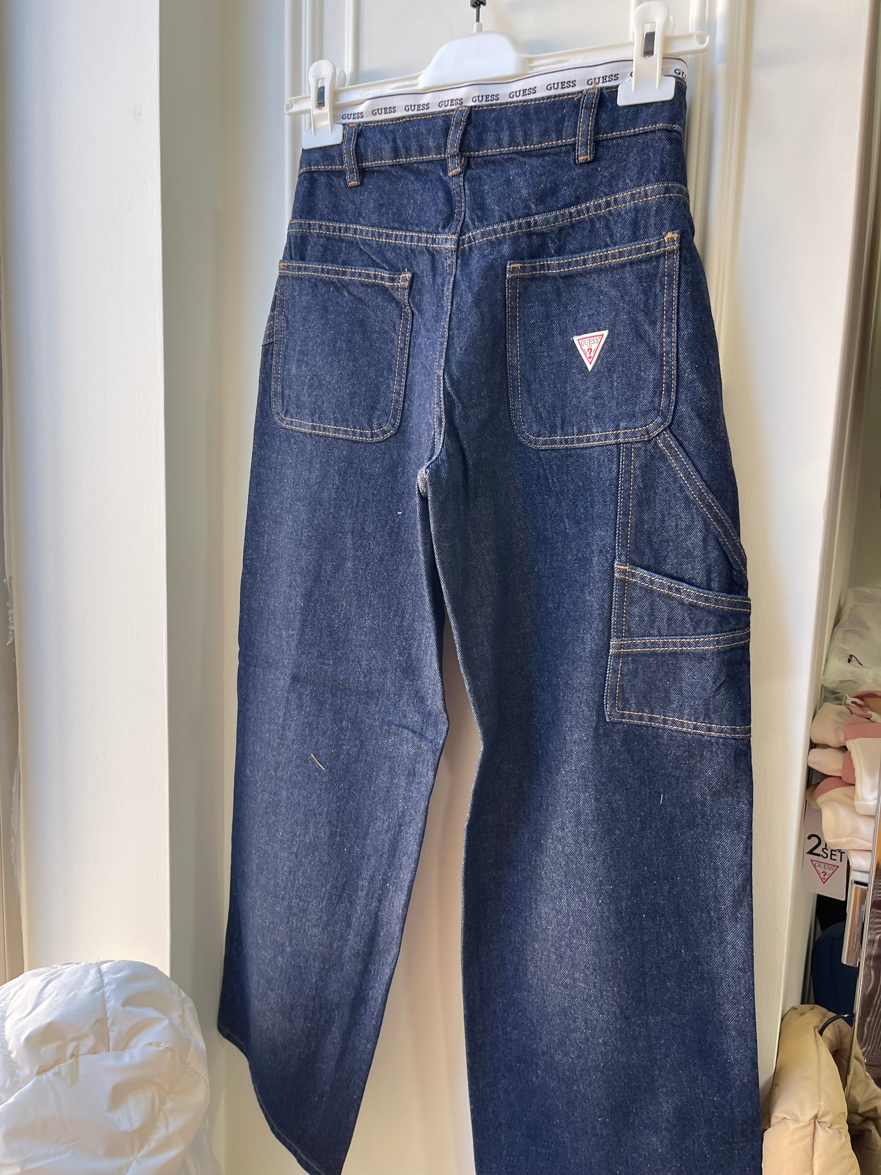 Jeans lavaggio scuro , modello largo con tasconi laterali , vestibilità over Per saperne di più
