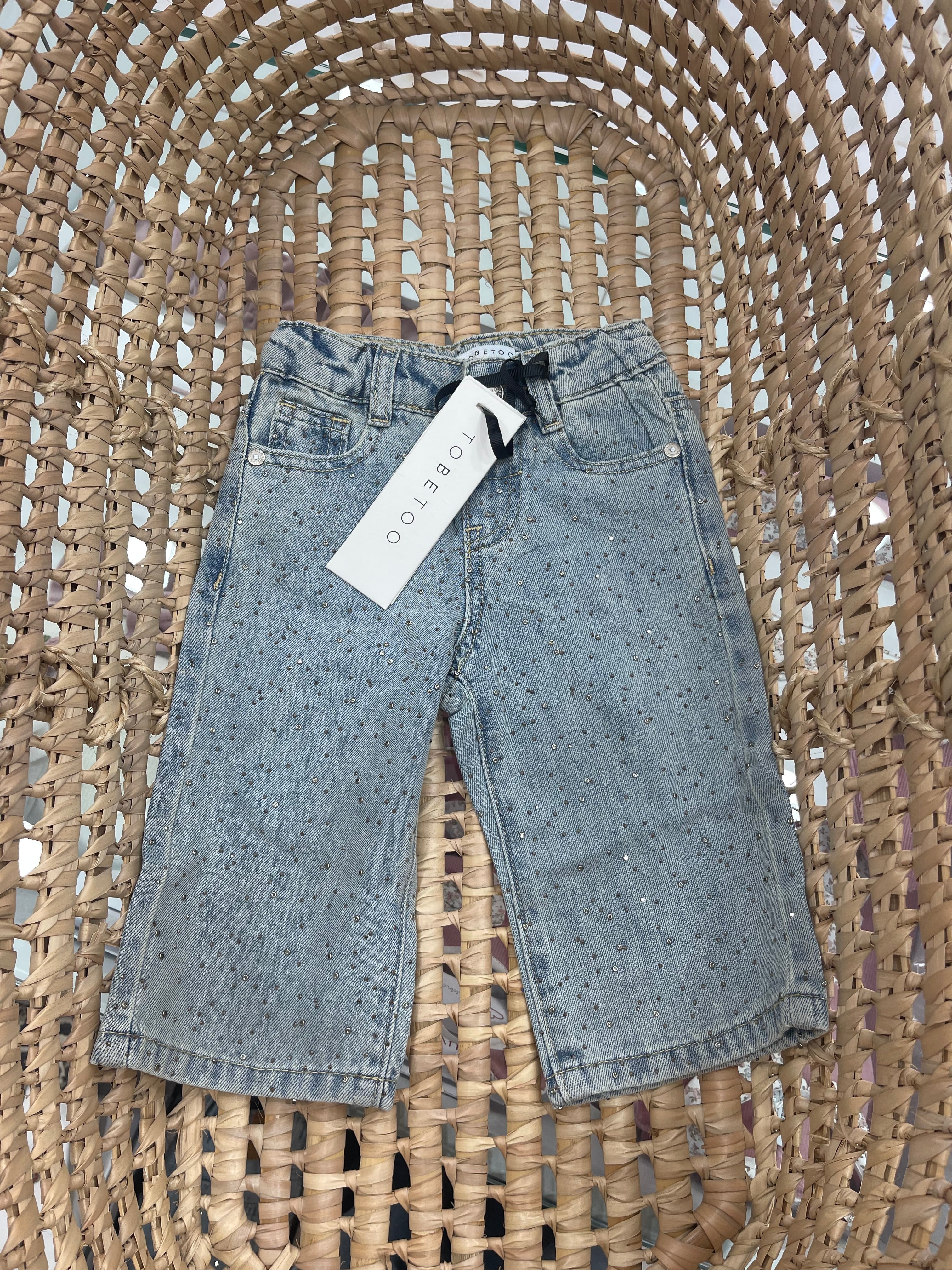 Jeans palazzo con brillantini , con bottone ed elastico interno Per saperne di più