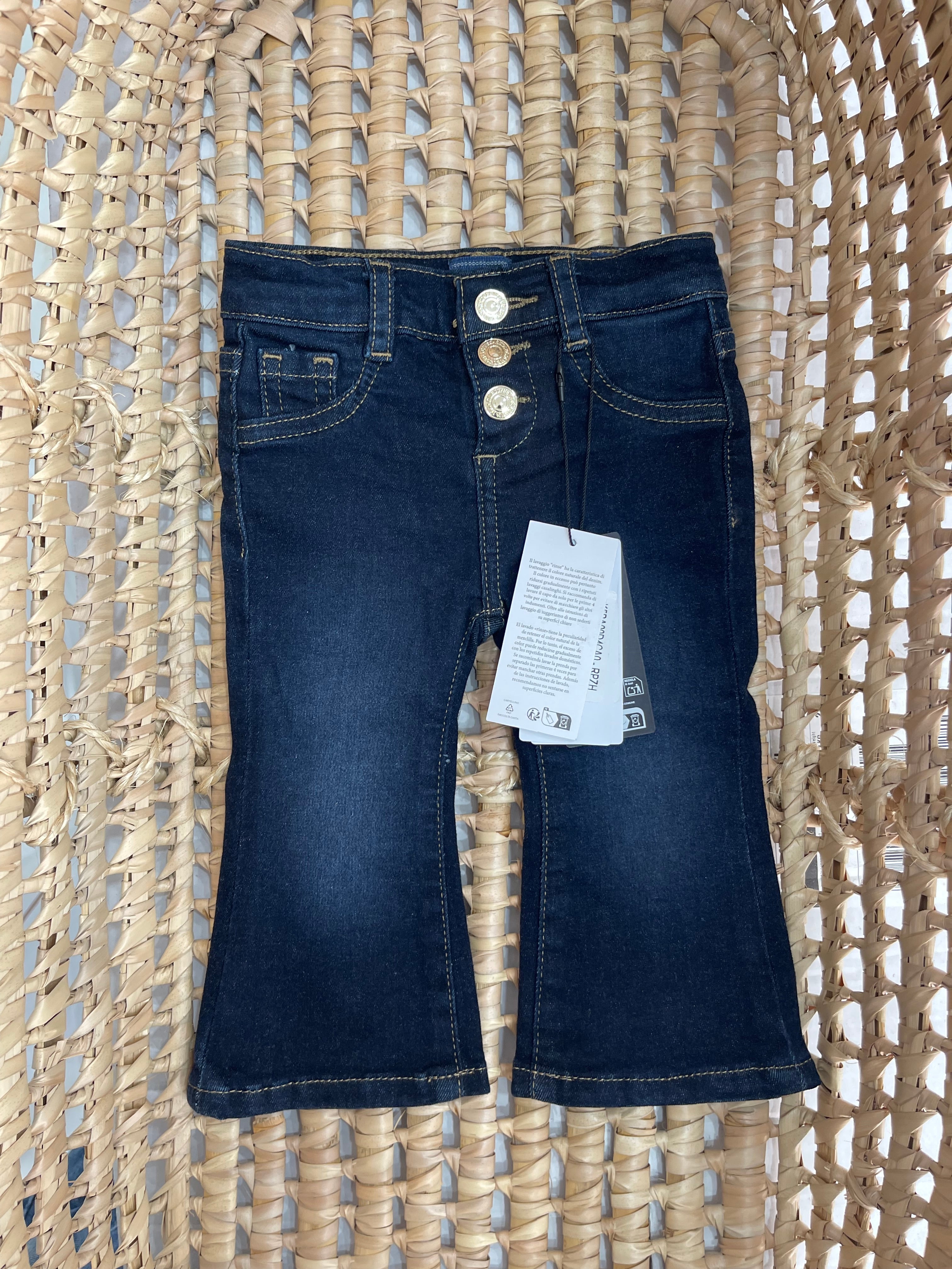 Jeans bimba con bottoni oro , leggermente a zampetta , culisse interna per regolare la vita vestibilità regolare Per saperne di più