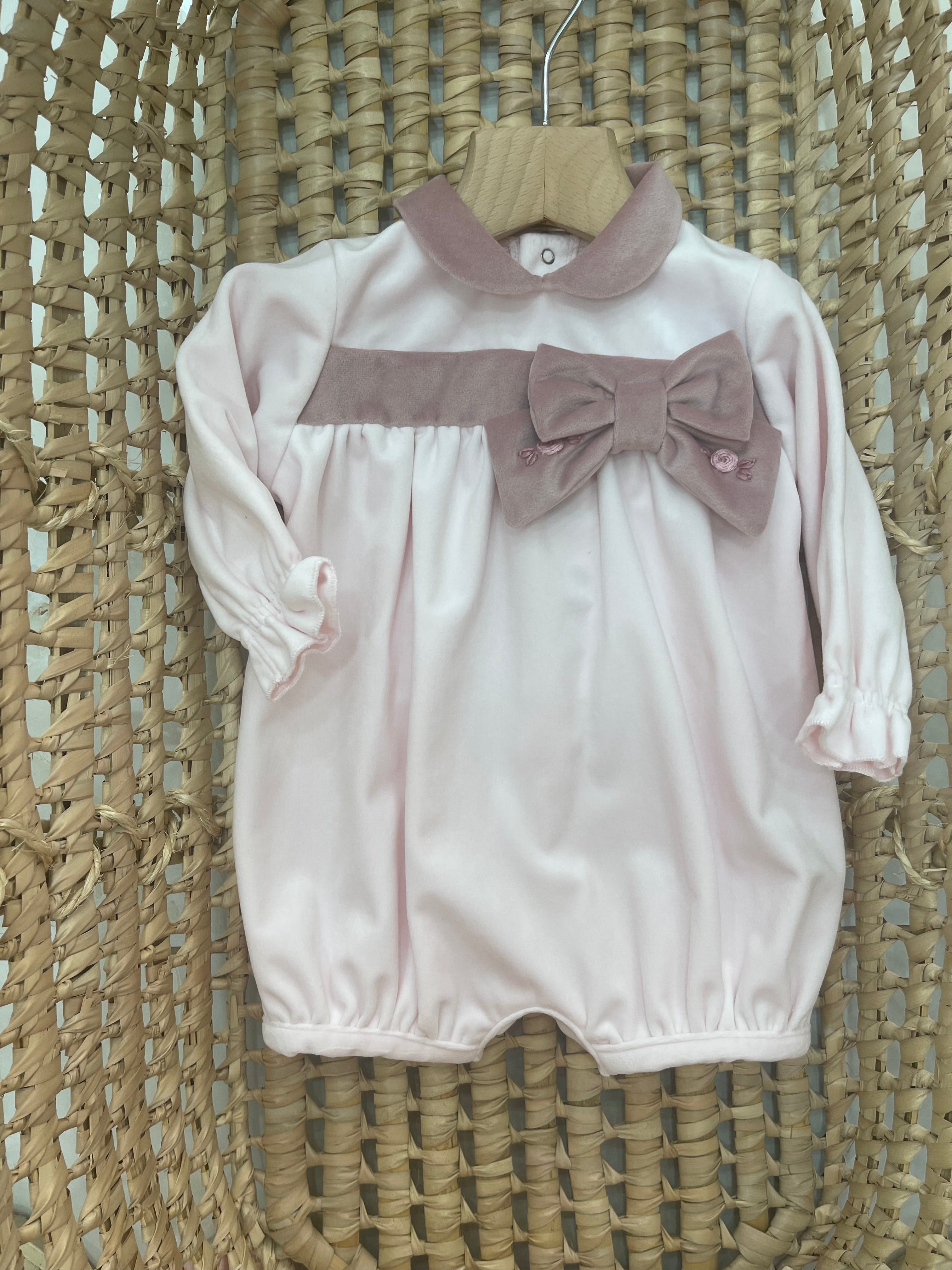 Pagliacetto neonata con bottoni sotto e dietro comodo in ciniglia e bordi in velluto Per saperne di più
