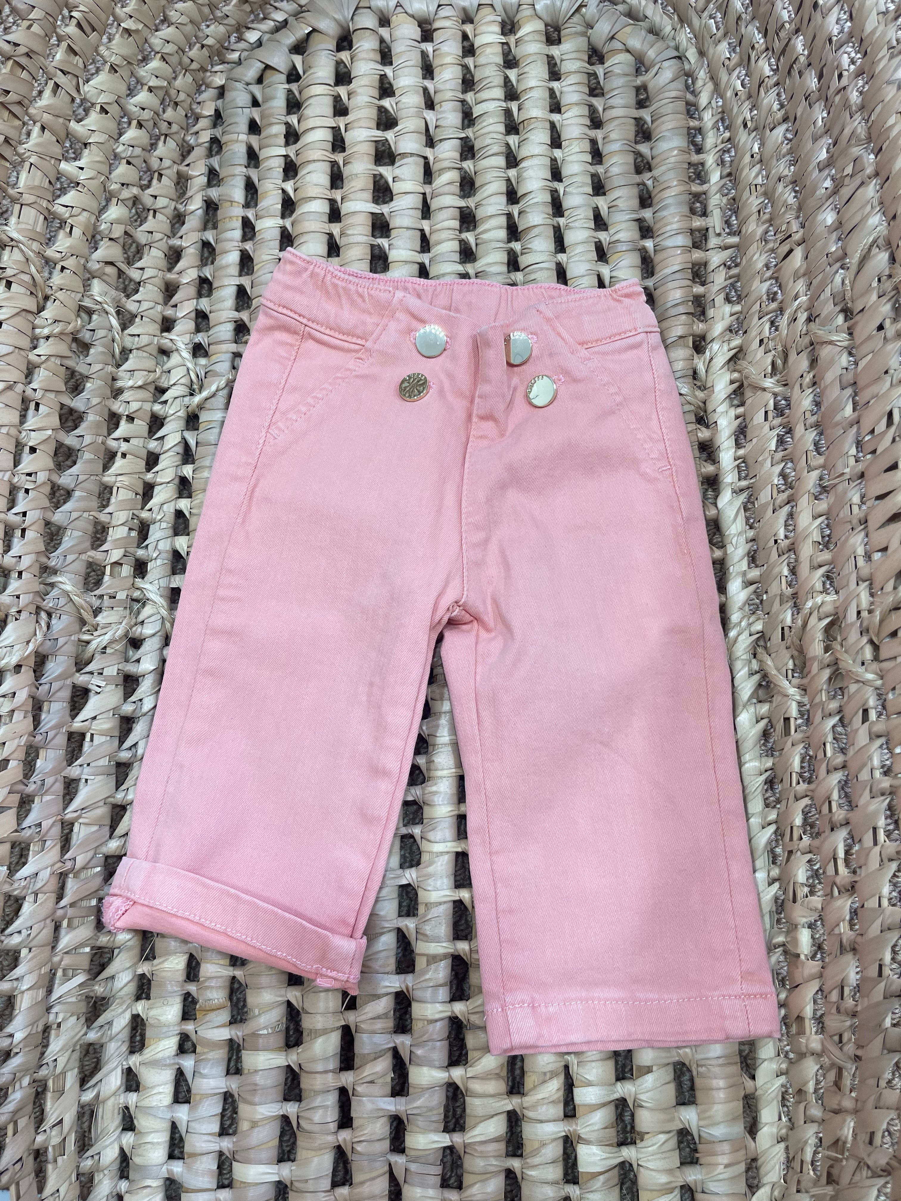 Pantalone palazzo jensato rosa con bottoni oro , con elastico dietro Per saperne di più