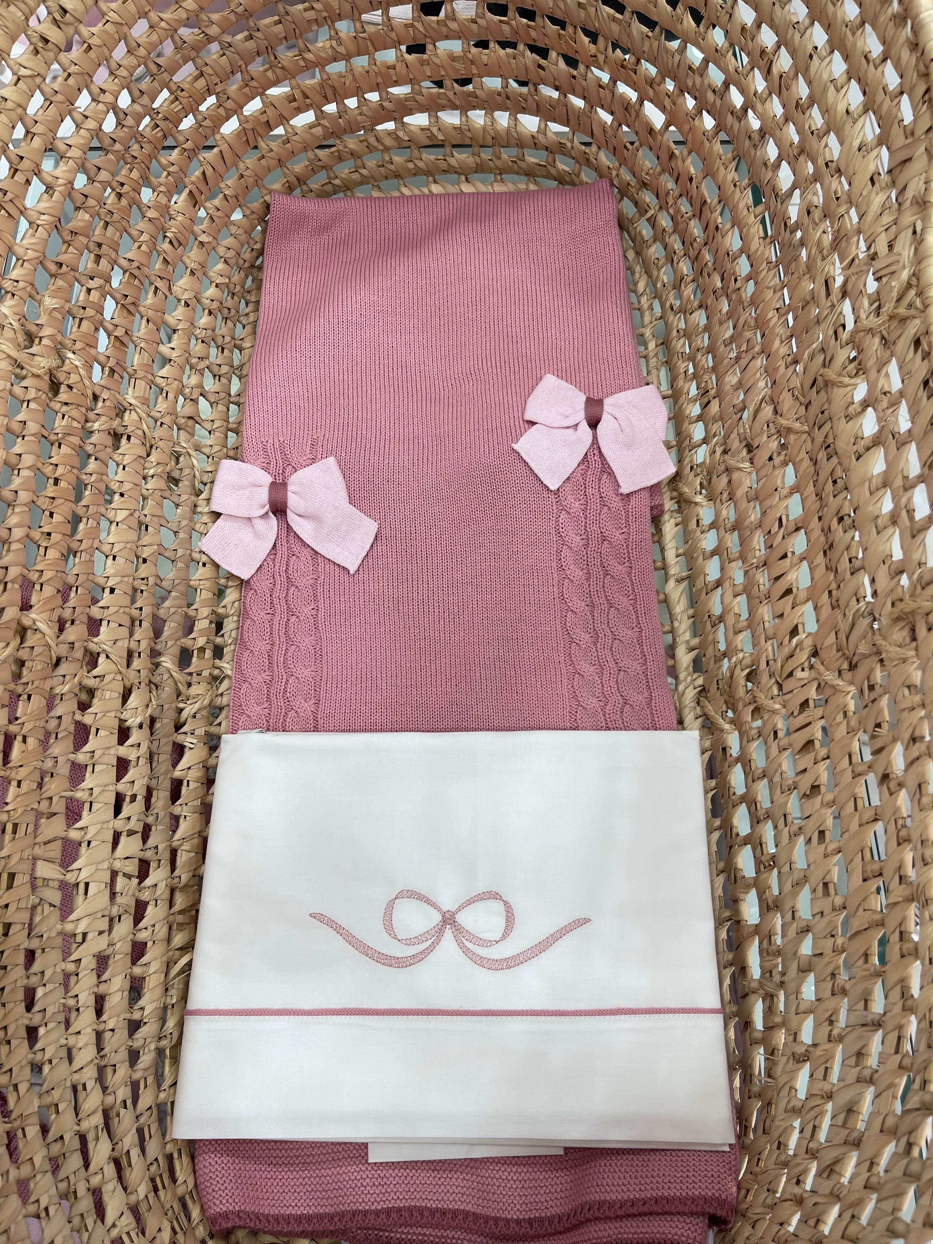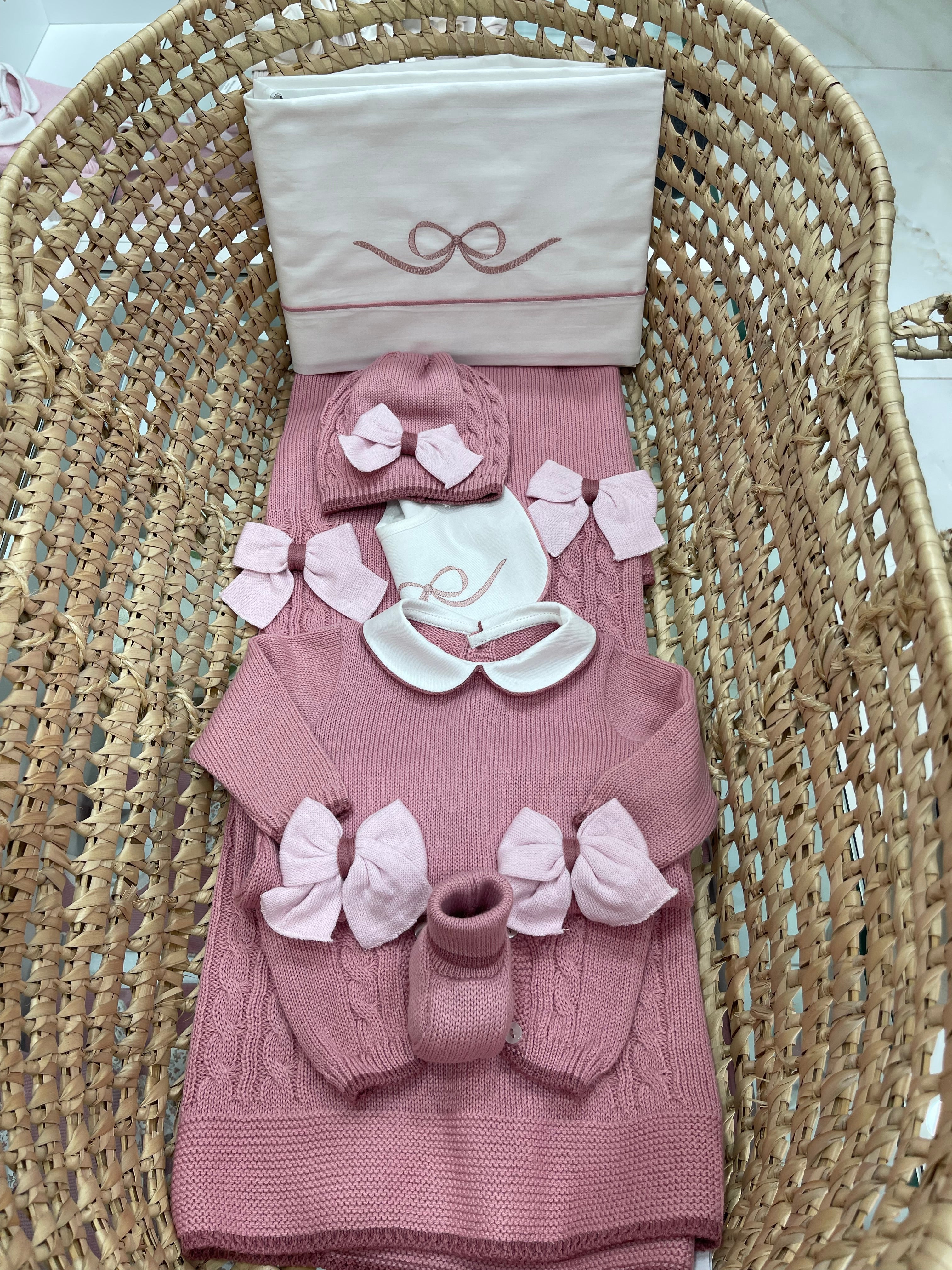Set nascita bimba , coperta con fiocchi lenzuola coordinate , tutina con fiocchi coordinata , scarpine coordinate , cappello e... Per saperne di più