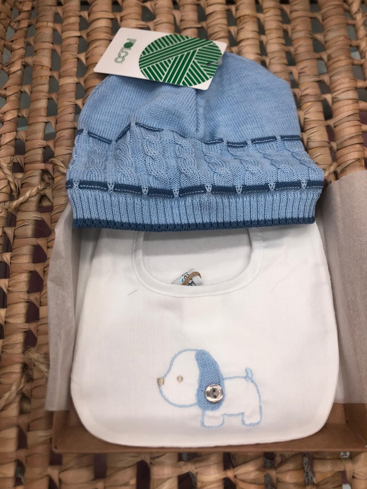 Set cappello in trecce celeste con bavetta coordinata in mussola con disegno ricamato , vestibilità comoda Per saperne di più