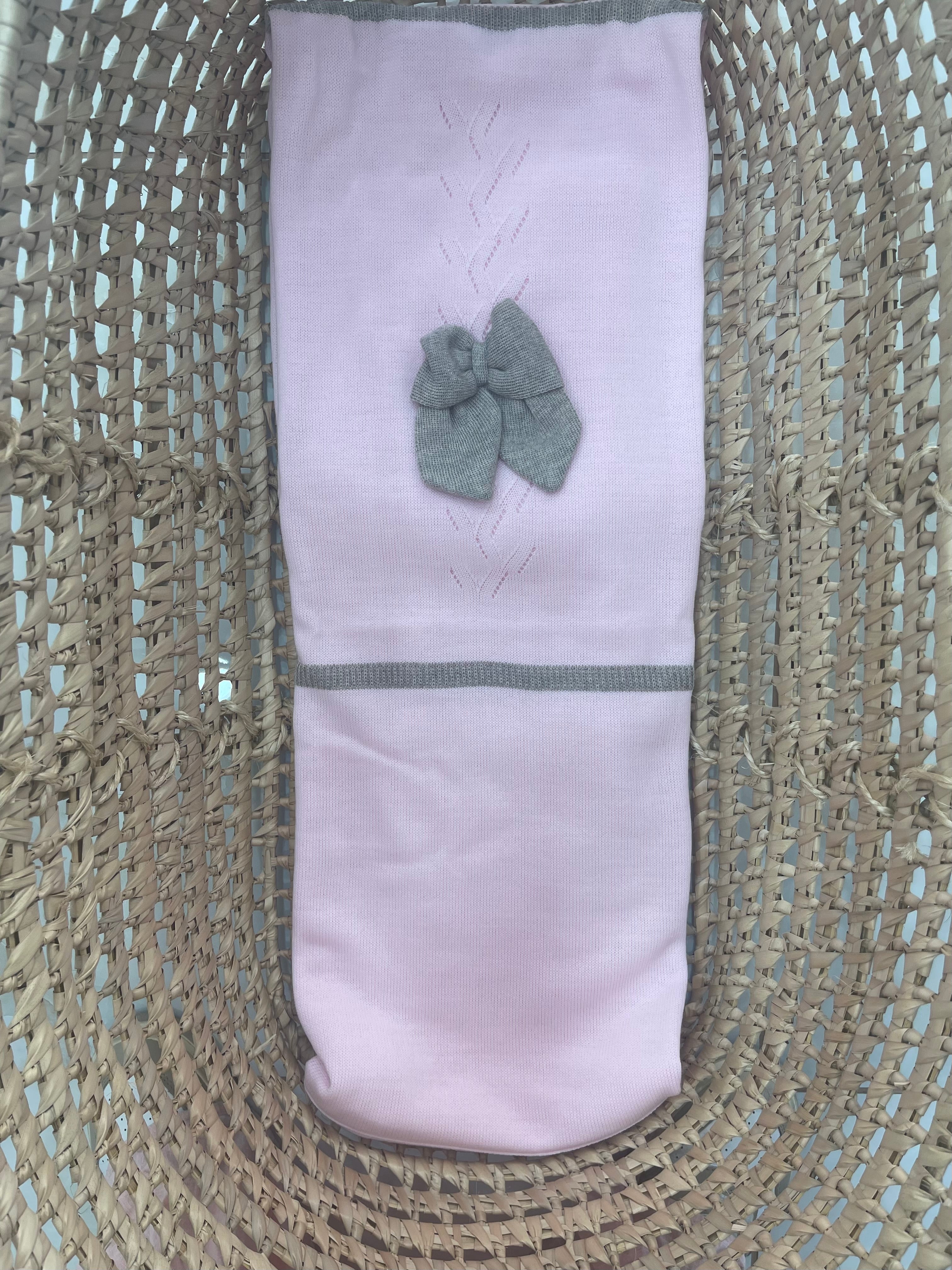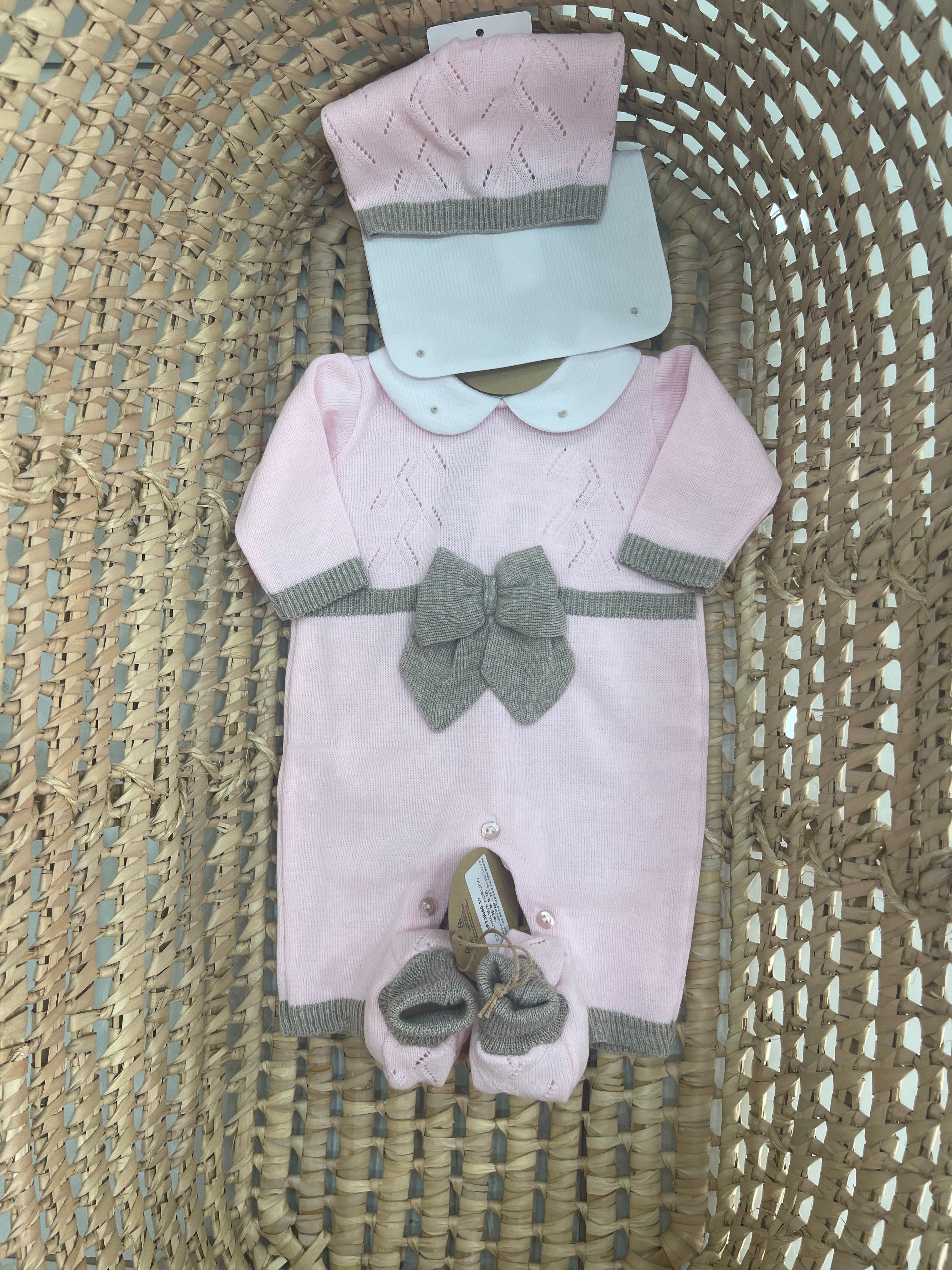 Uscita clinica coordinato di coperta con fiocco cucito , tutina con fiocco di richiamo , scarpe , cappello e bavetta... Per saperne di più