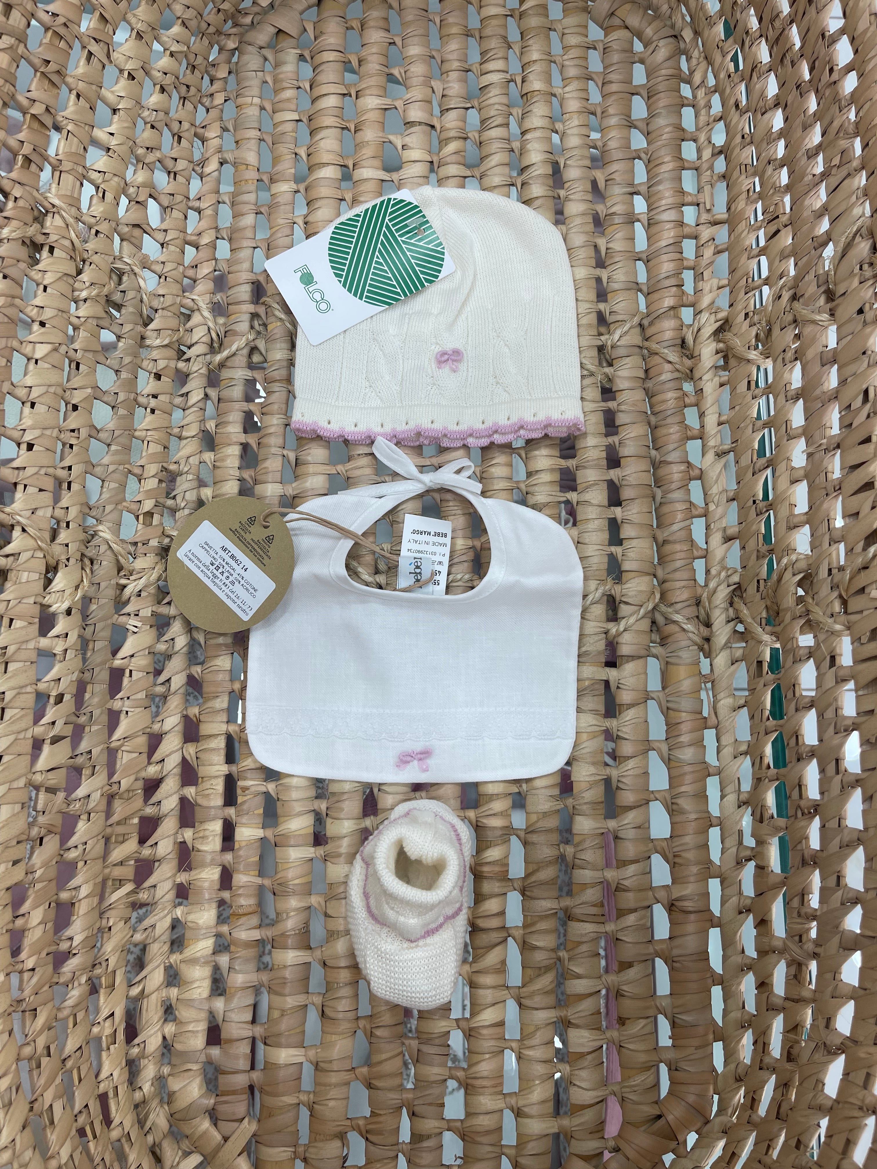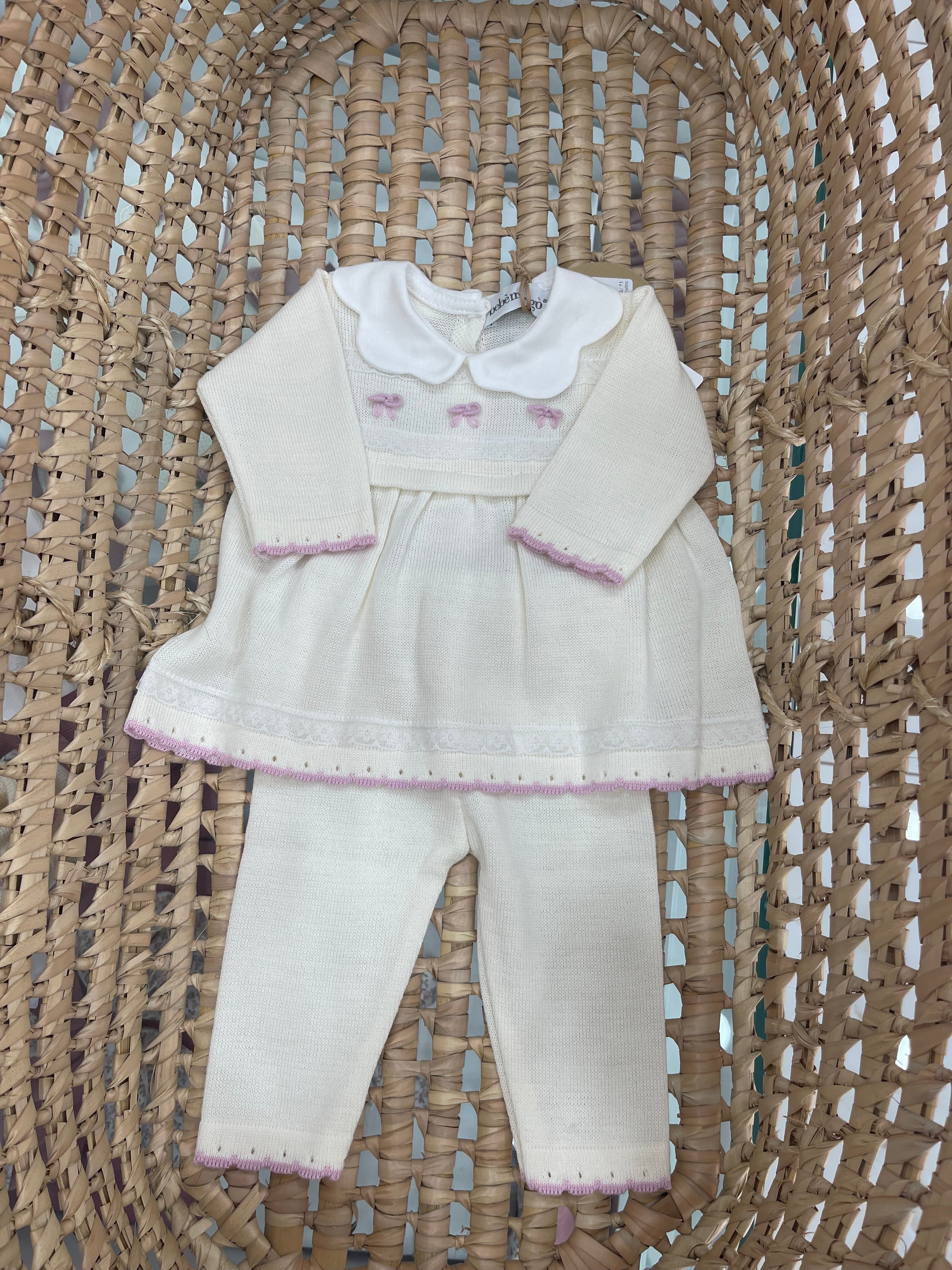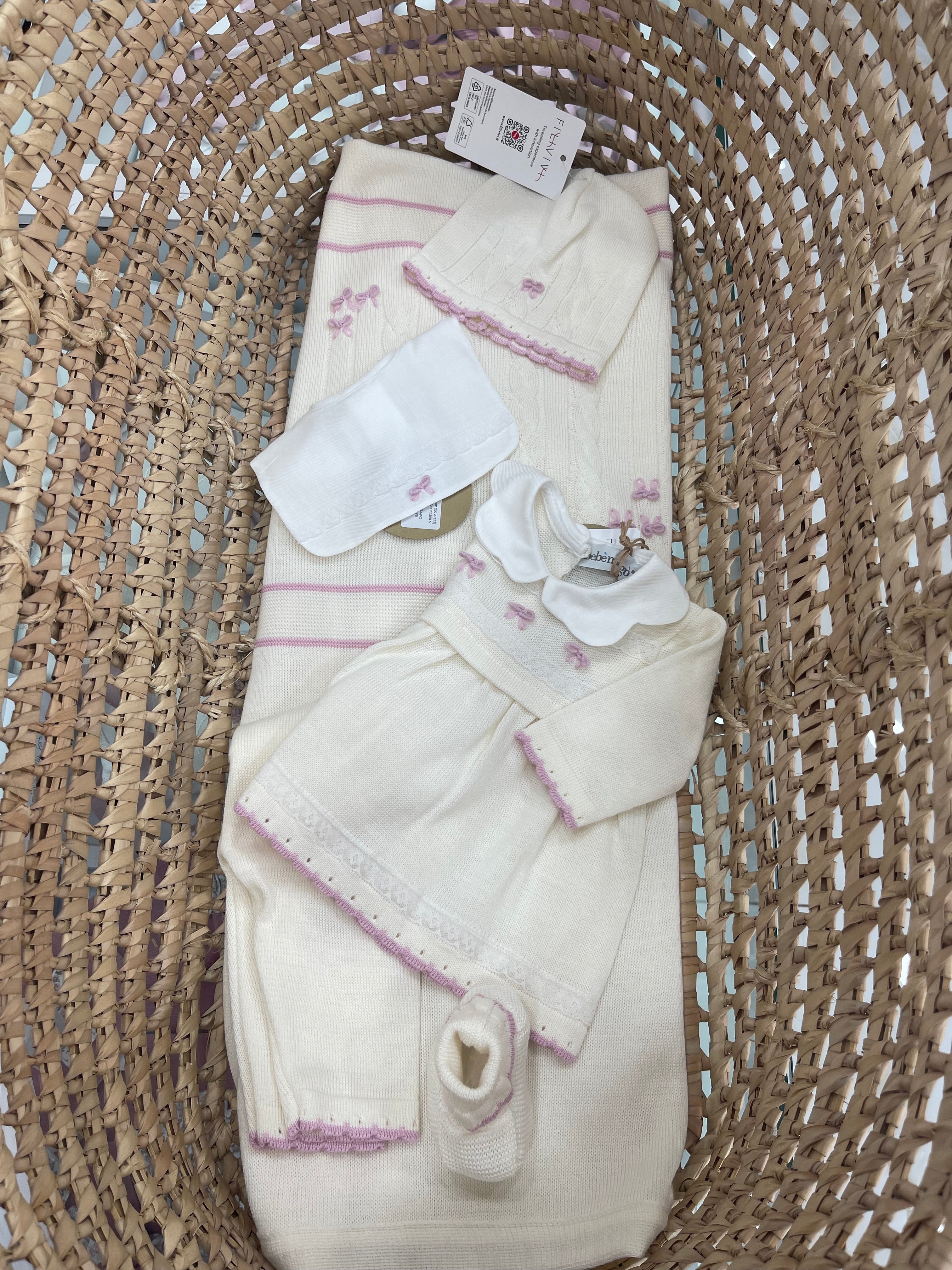 Set coperta in morbidissima lana con fiocchi in lana , vestina con ghettina tono su tono in panna e ciclamino... Per saperne di più