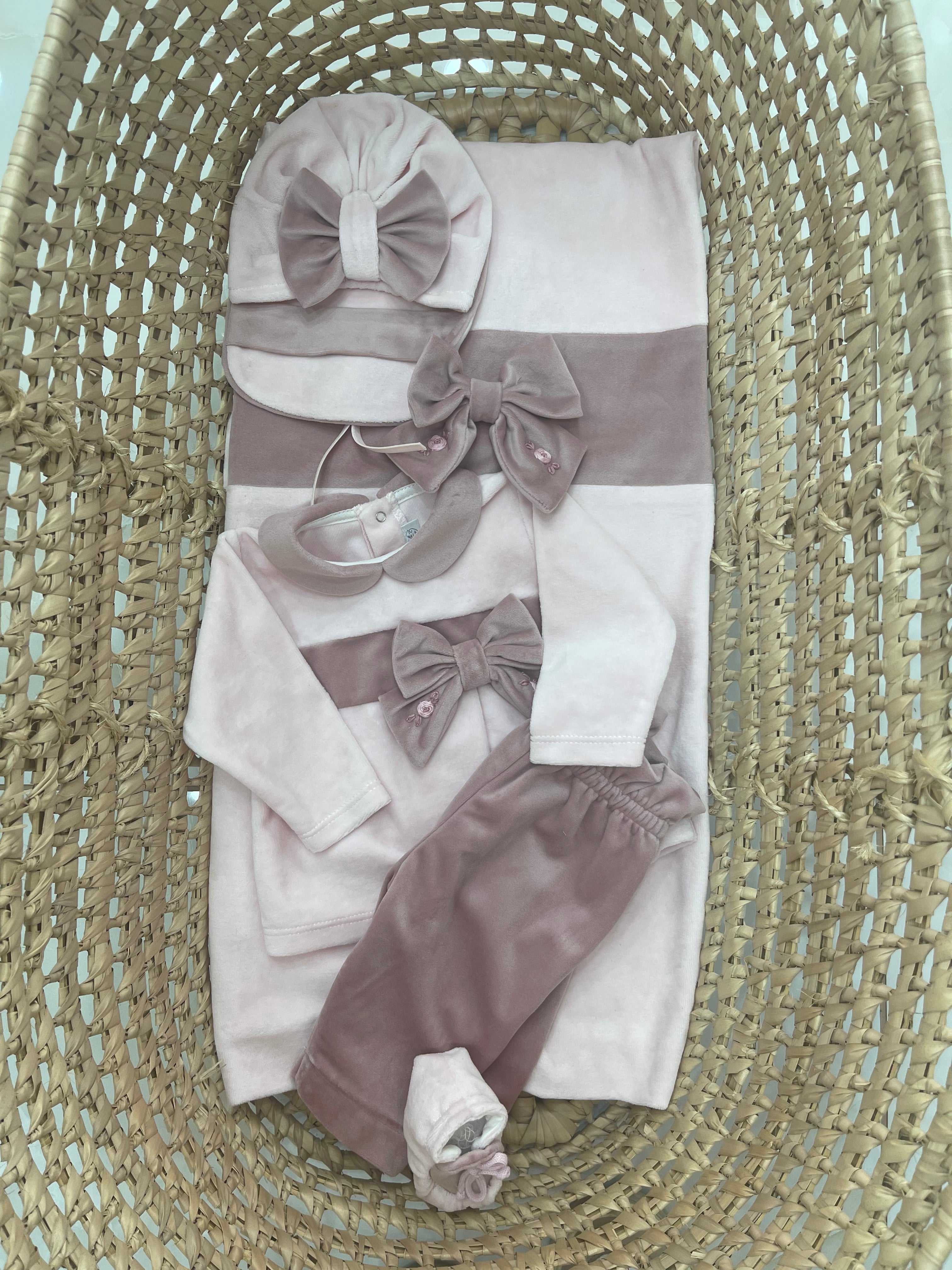Coordinato Nascita Lei con coperta in ciniglia con Vellutto il fiocco sul davanti , coordinato con vestina e ghettina senza... Per saperne di più
