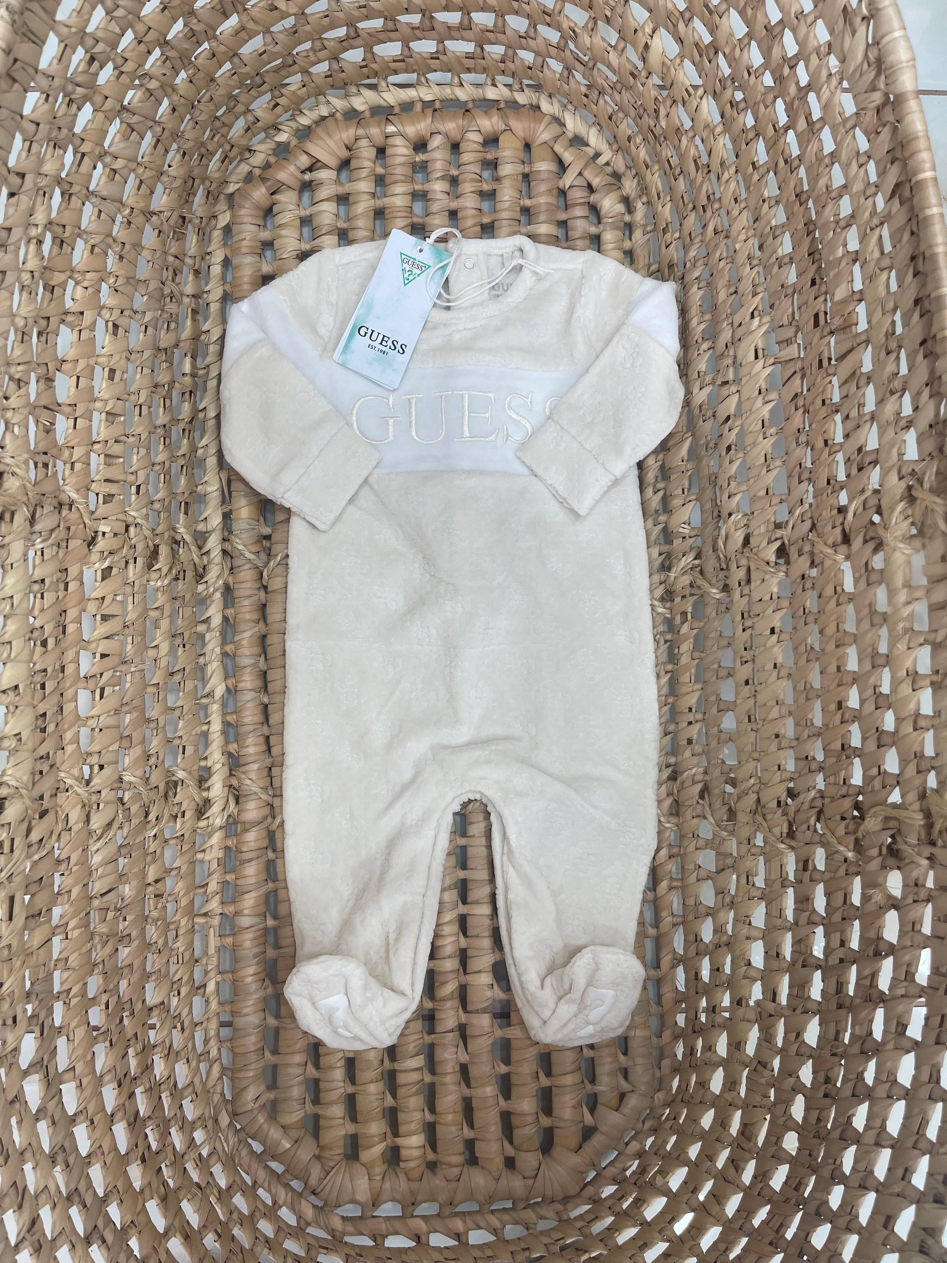Tutina comoda Guess in ciniglia , con piedino e comodo bottoni sotto e dietro , neutra Per saperne di più