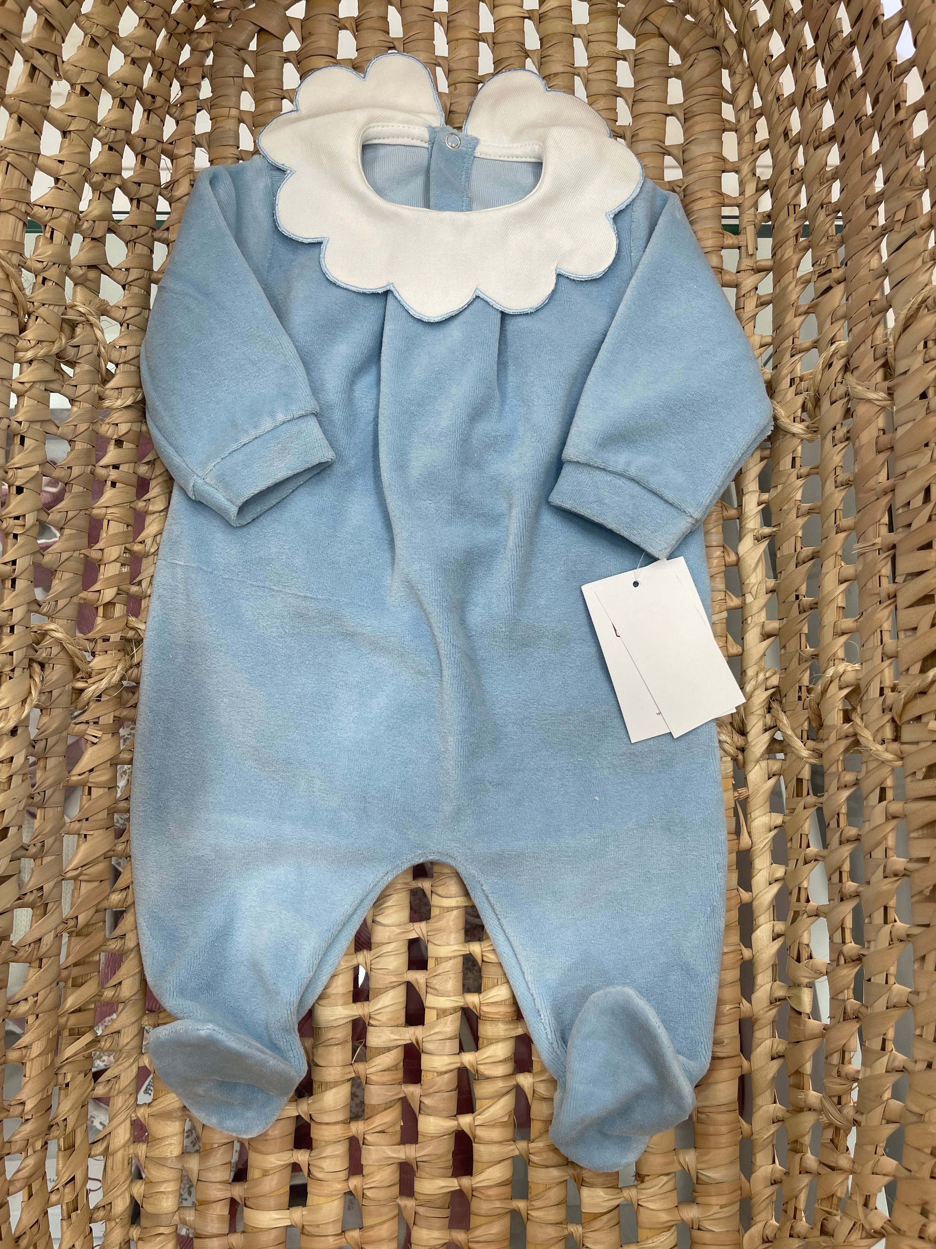 Tutina in morbida ciniglia turchese con collo rotondo Per saperne di più