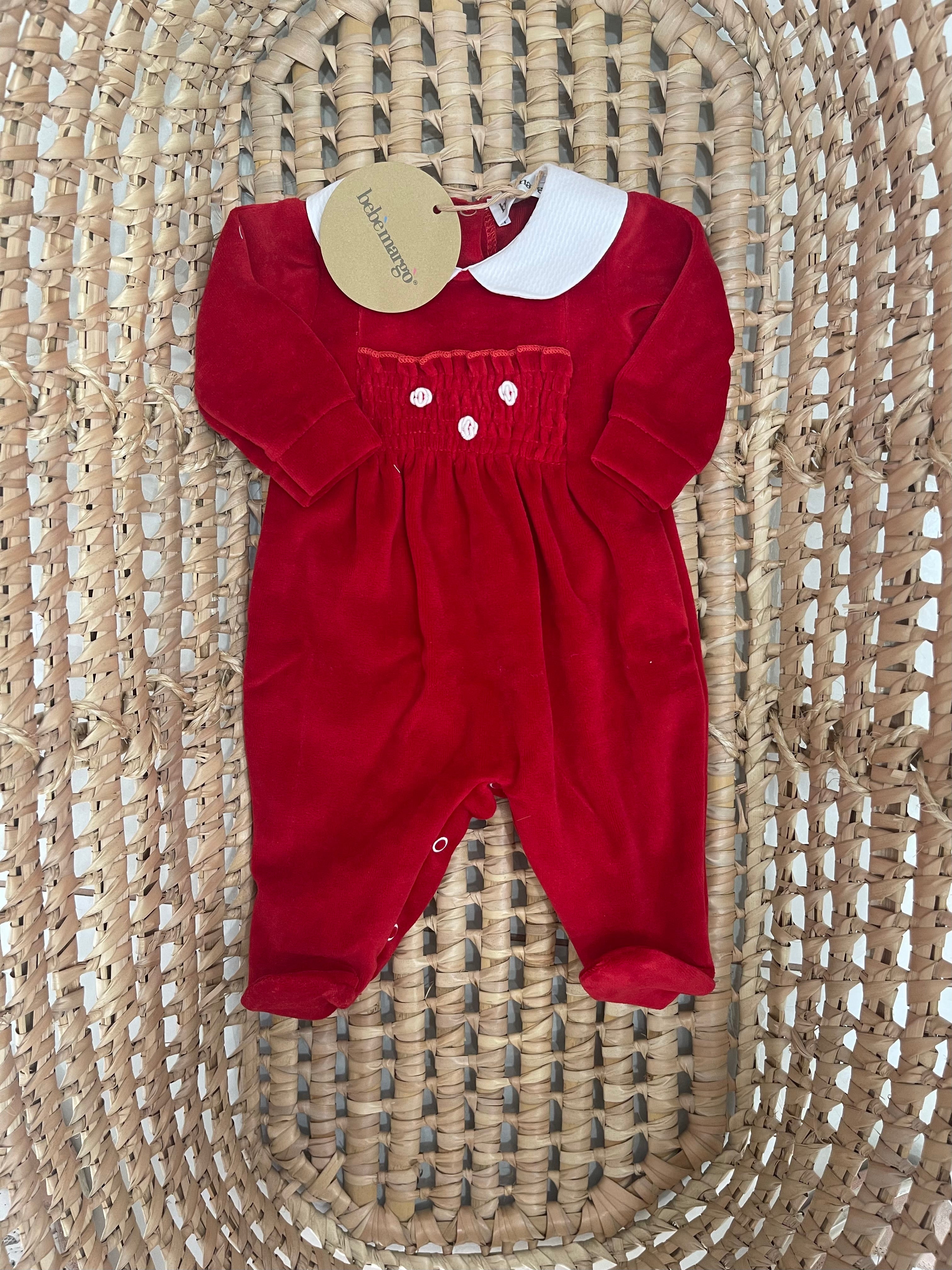 Tutina in velluto rossa con punti smok in ciniglia e bottoni sotto Per saperne di più